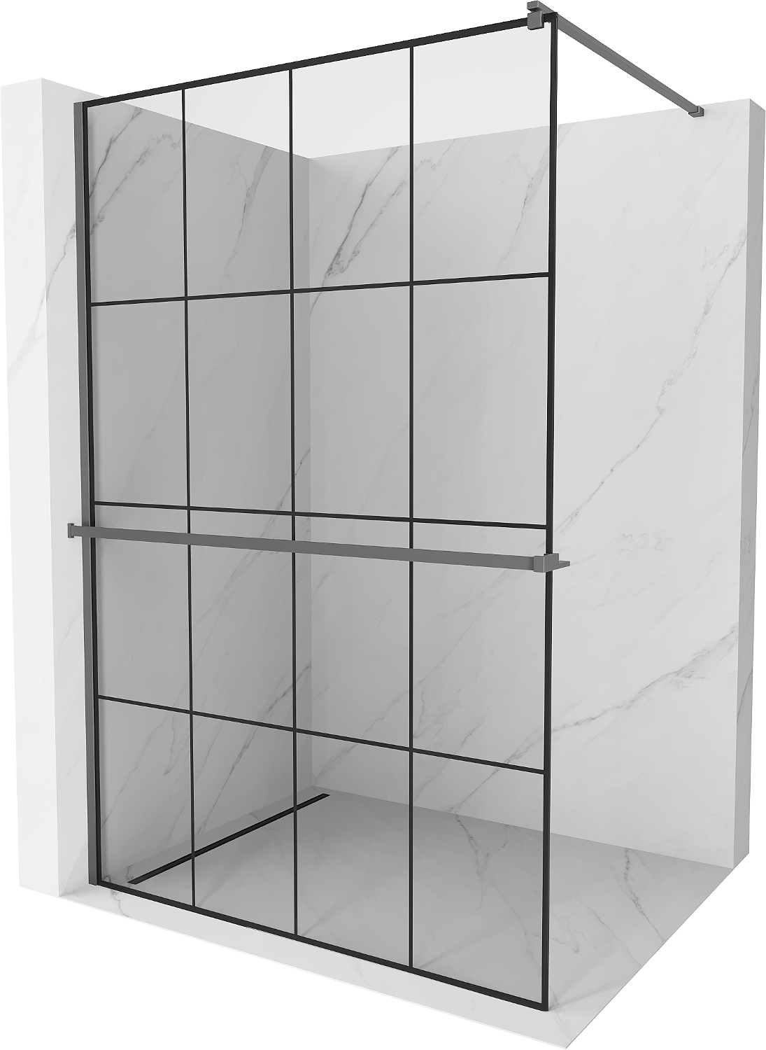 Mexen Kioto+ perete de duș cu raft Walk-in 130 x 200 cm, grilaj negru, gun metal - 800-130-121-95-77