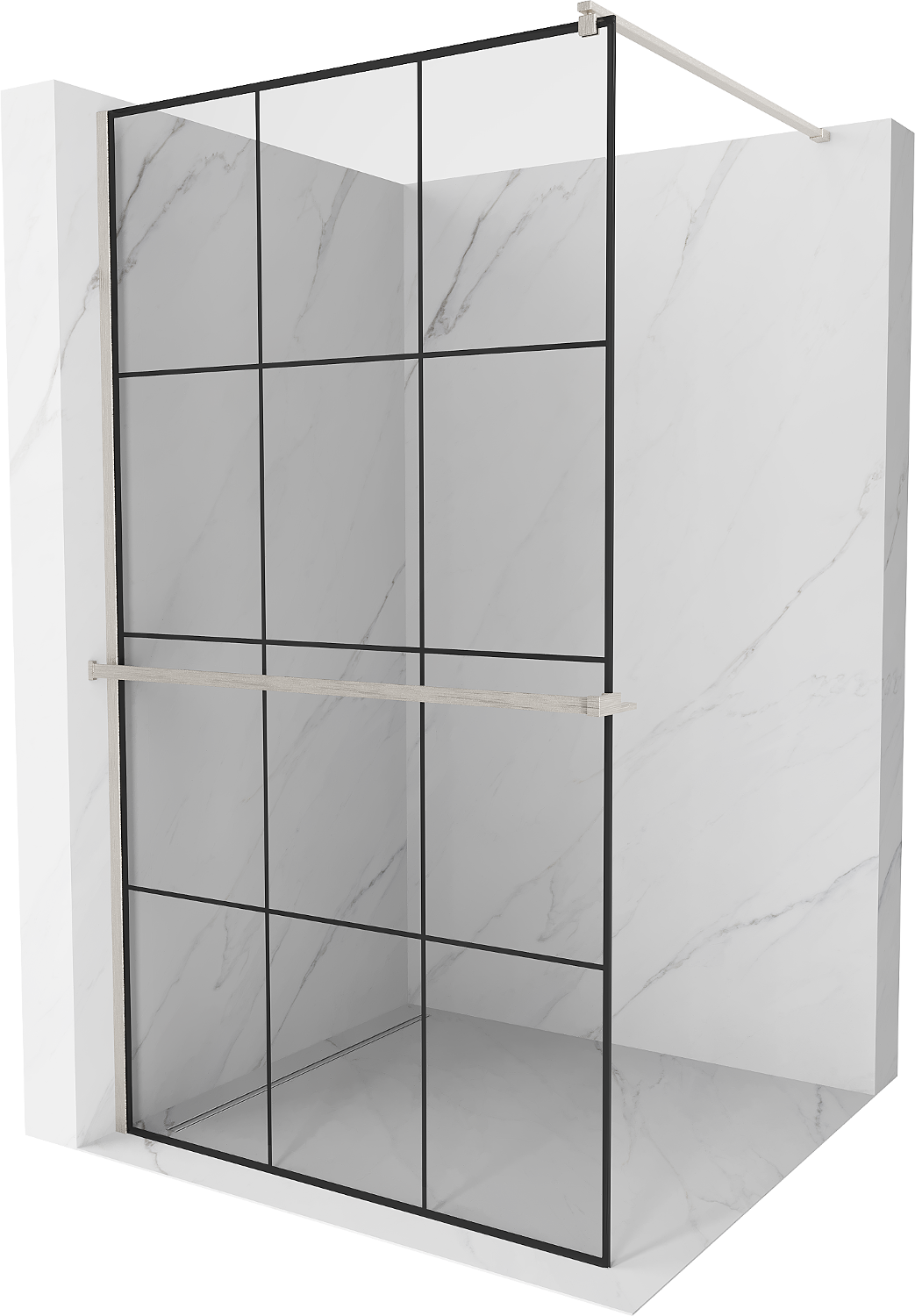 Mexen Kioto+ panou de duș cu raft Walk-in 100 x 200 cm, grilaj negru, nichel periat - 800-100-121-97-77