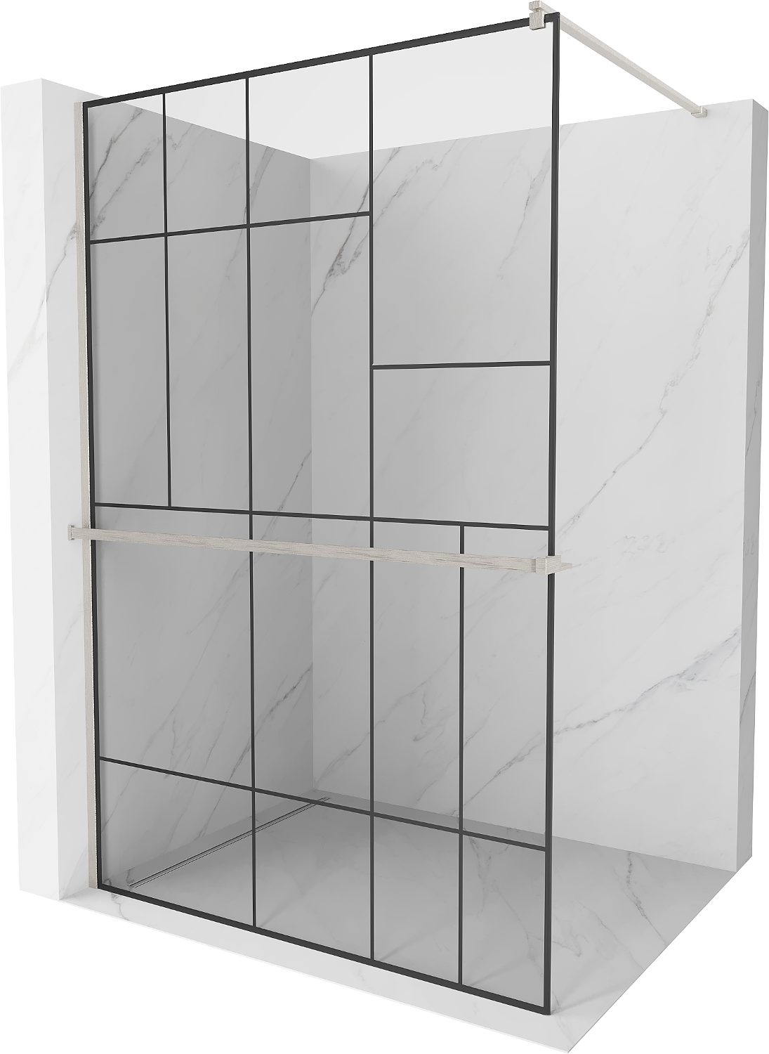Mexen Kioto+ perete de duș cu raft Walk-in 110 x 200 cm, model negru, nichel periat - 800-110-121-97-78