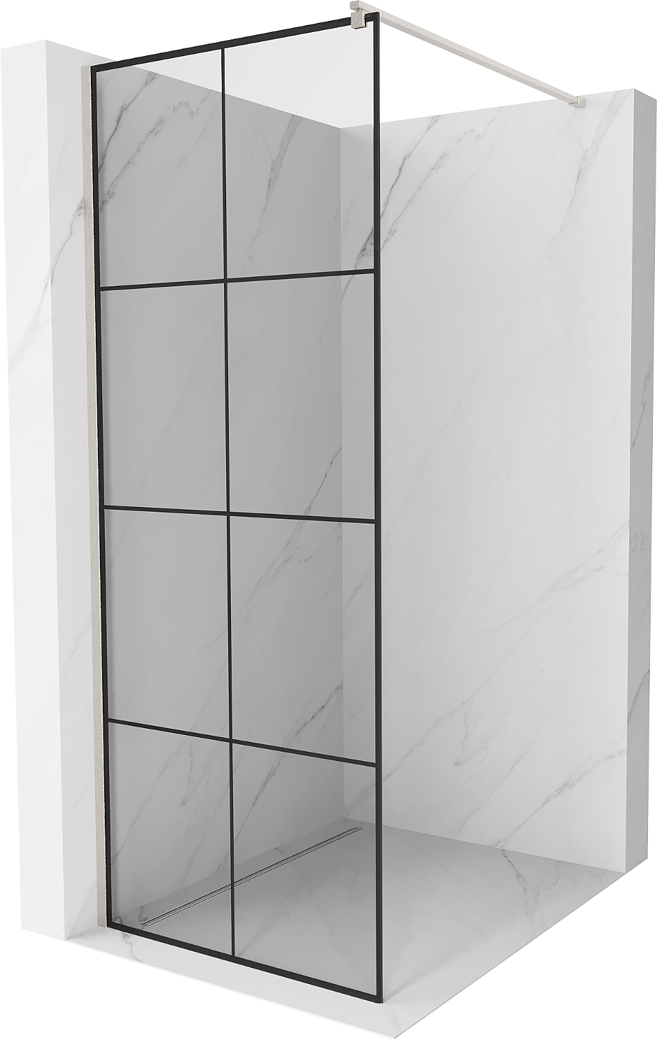 Mexen Kioto Perete pentru duș Walk-in 90 x 200 cm, grilaj negru 8 mm, nichel periat - 800-090-101-97-77