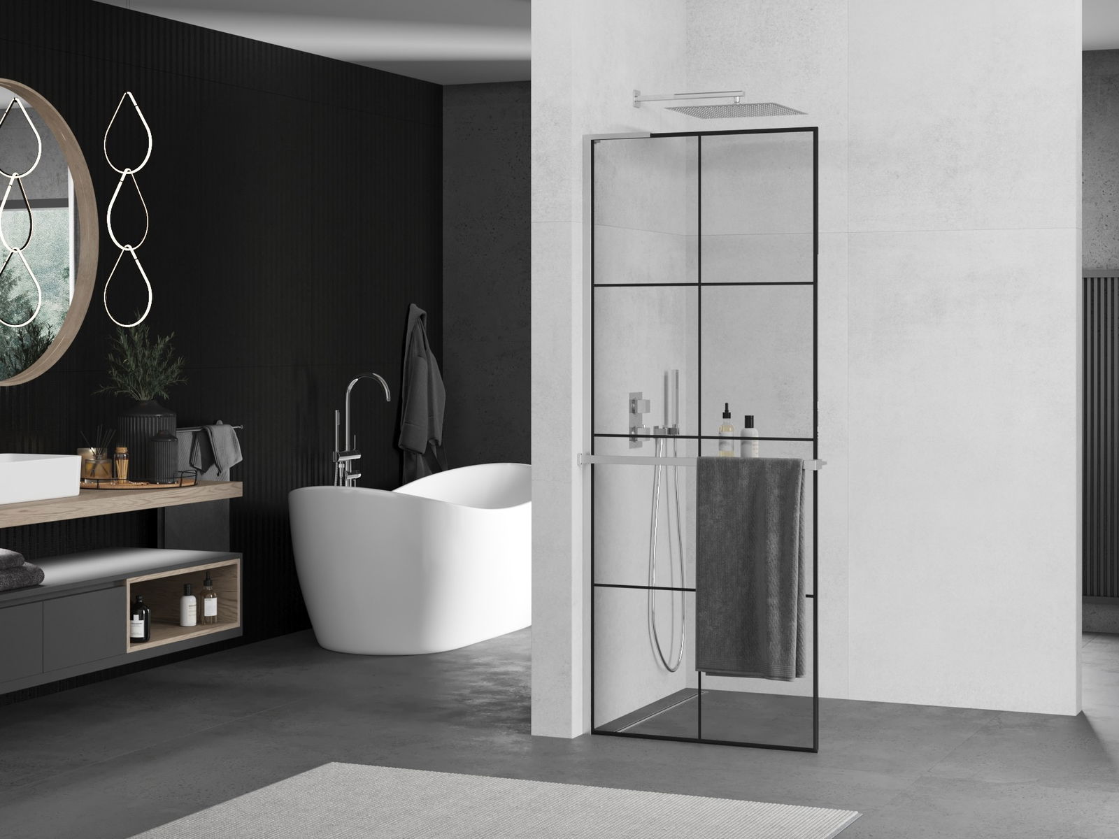 Mexen Kioto+ L perete de duș cu raft Walk-in 70 x 200 cm, grilaj negru, crom - 800-070-123-01-77
