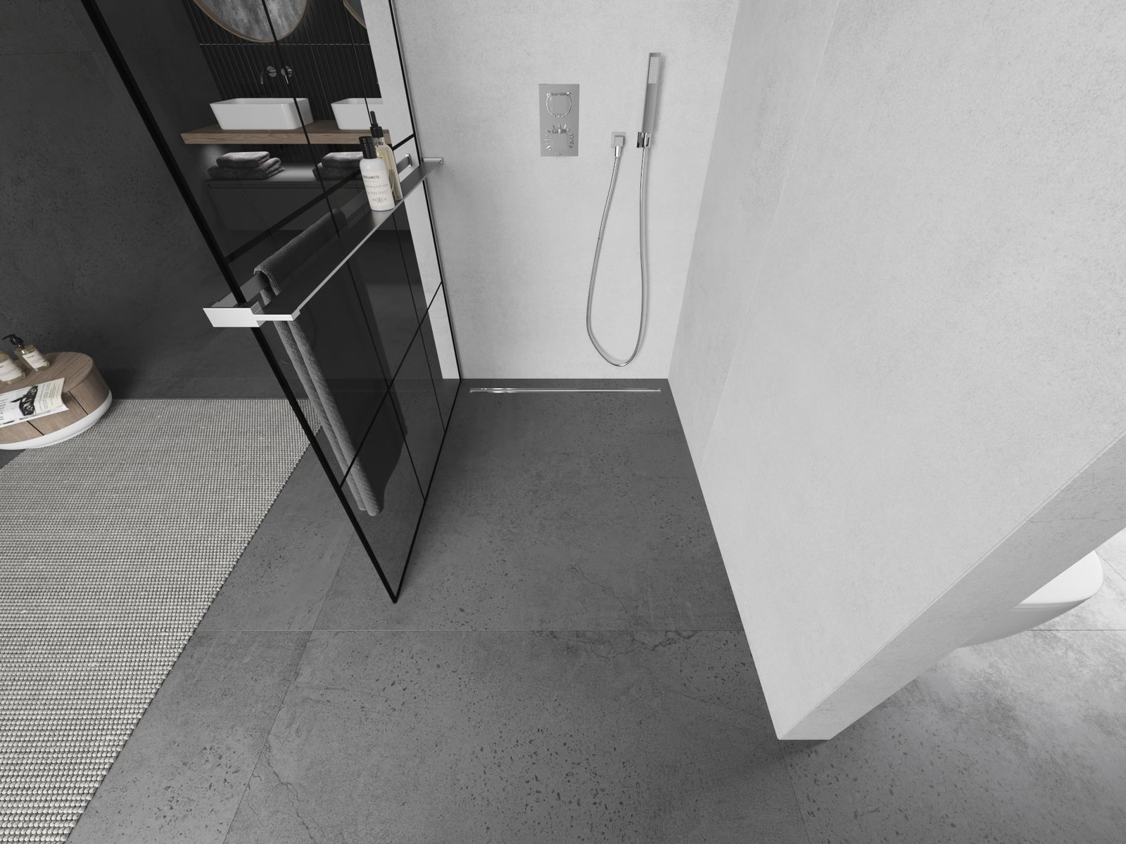 Mexen Kioto+ L perete de duș cu raft Walk-in 110 x 200 cm, grilaj negru, crom - 800-110-123-01-77