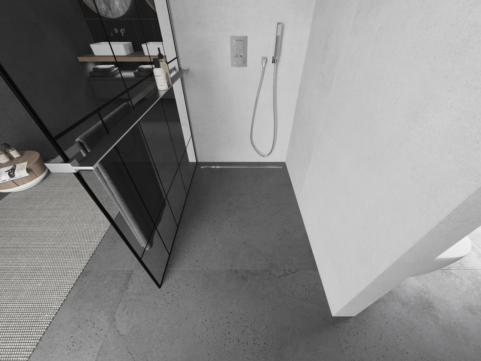 Mexen Kioto+ L panou de duș cu raft Walk-in 110 x 200 cm, model negru, crom - 800-110-123-01-78