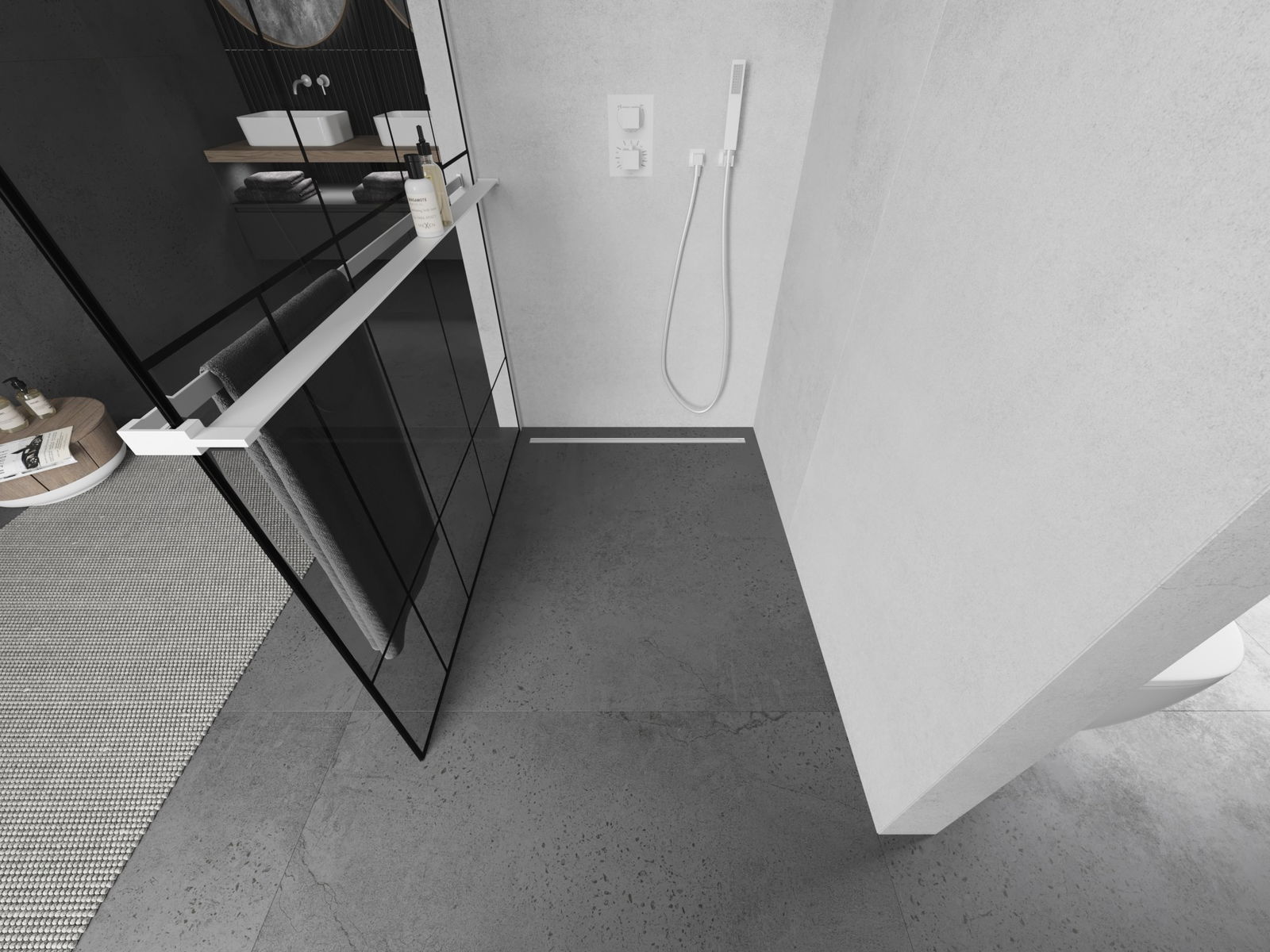 Mexen Kioto+ L panou de duș cu raft Walk-in 90 x 200 cm, model negru, alb - 800-090-123-20-78