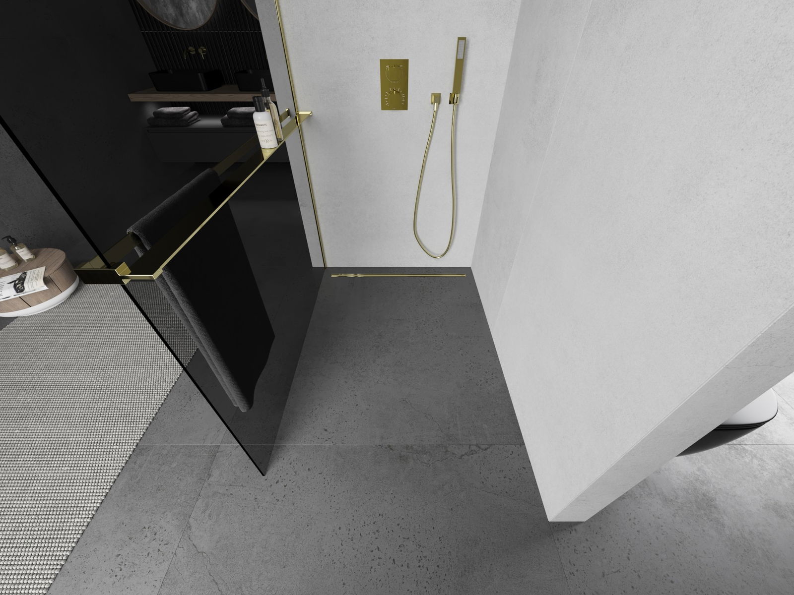 Mexen Kioto+ L perete de duș cu raft Walk-in 100 x 200 cm, grafit, auriu - 800-100-123-50-40