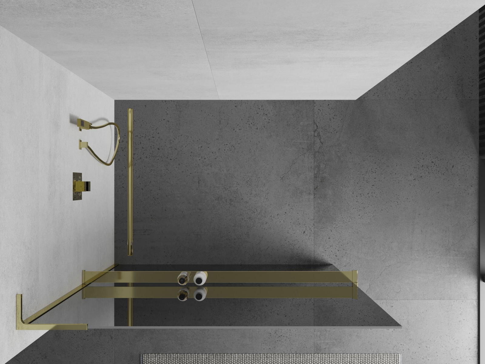 Mexen Kioto+ L paravan de duș cu raft Walk-in 70 x 200 cm, oglindă, auriu - 800-070-123-50-50