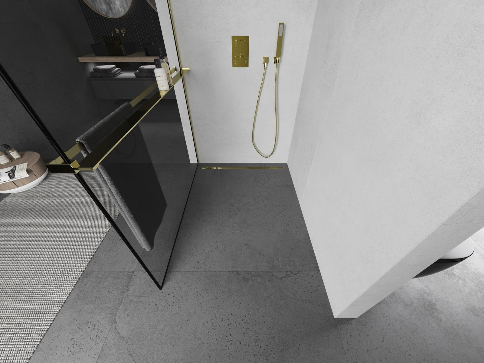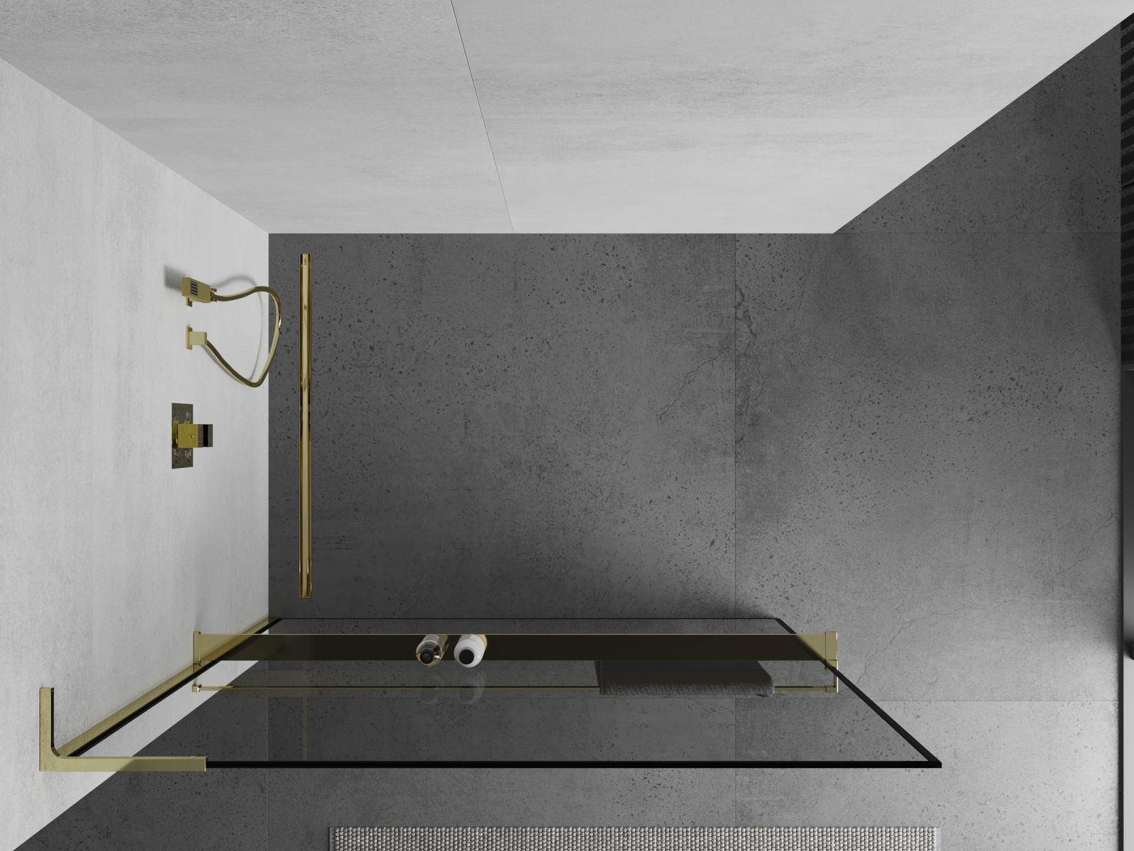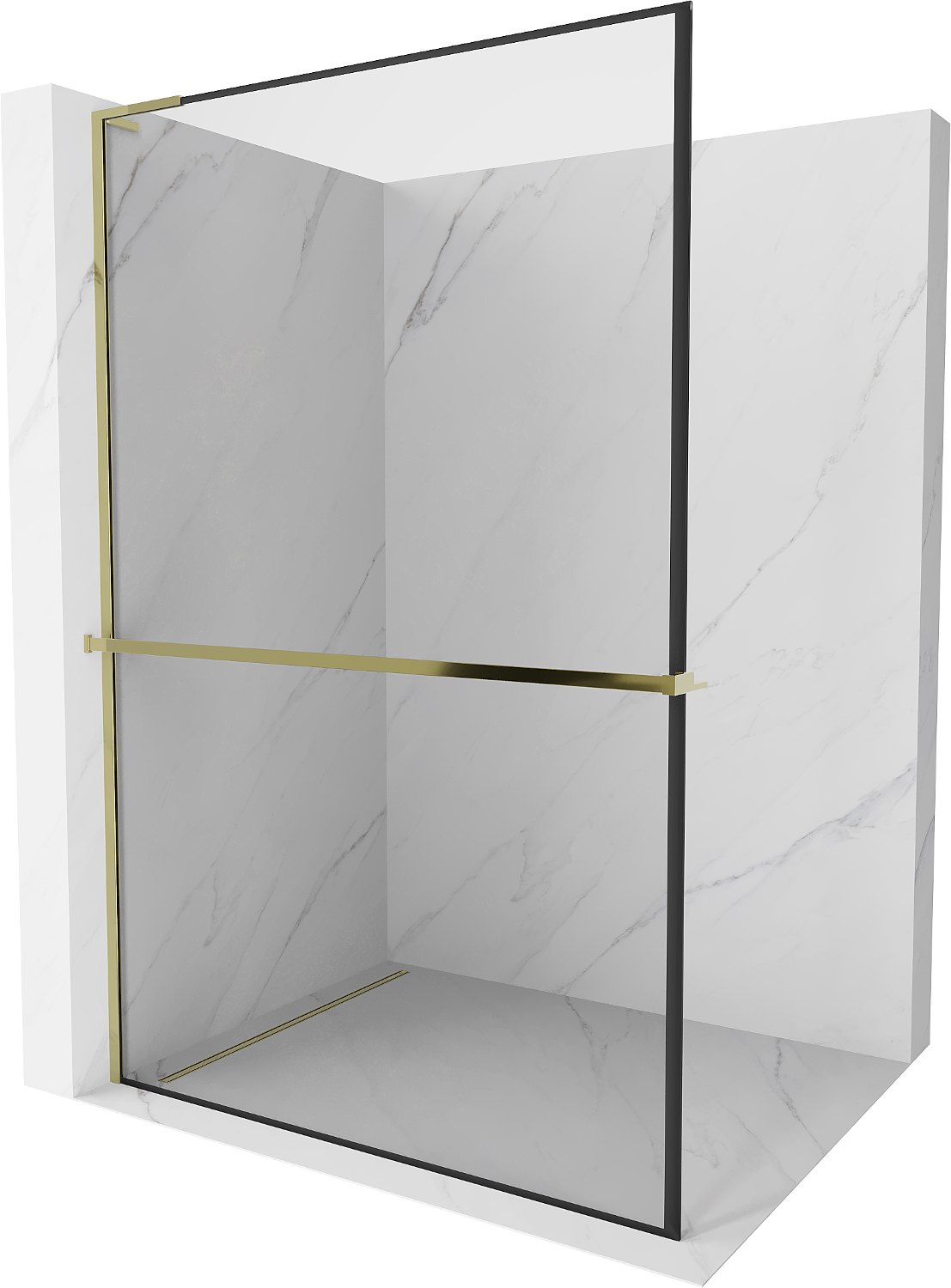 Mexen Kioto+ L Perete de duș cu raft Walk-in 70 x 200 cm, cadru negru, auriu - 800-070-123-50-70
