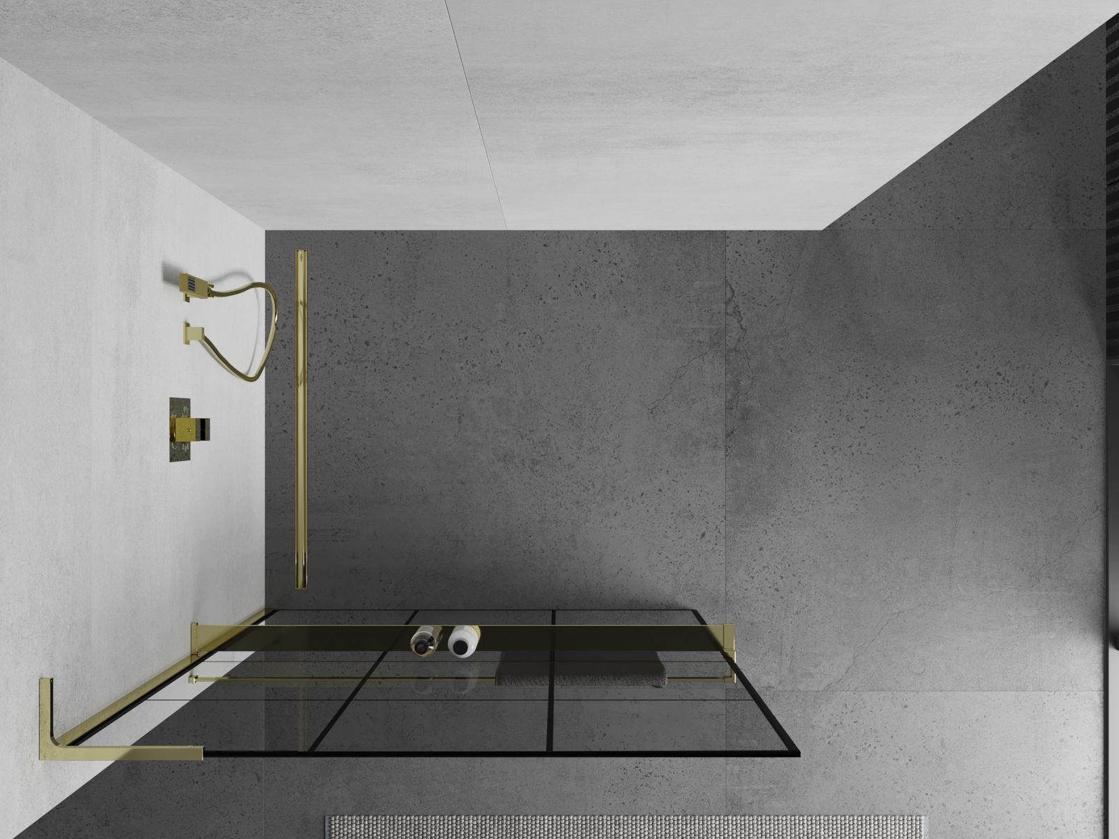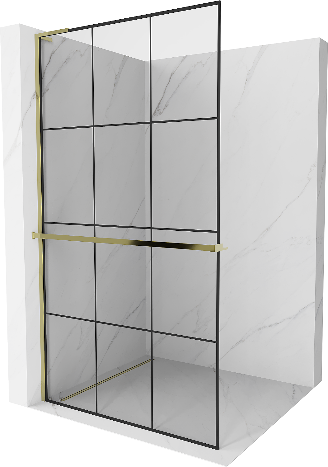 Mexen Kioto+ L perete de duș cu raft Walk-in 110 x 200 cm, grilaj negru, auriu - 800-110-123-50-77