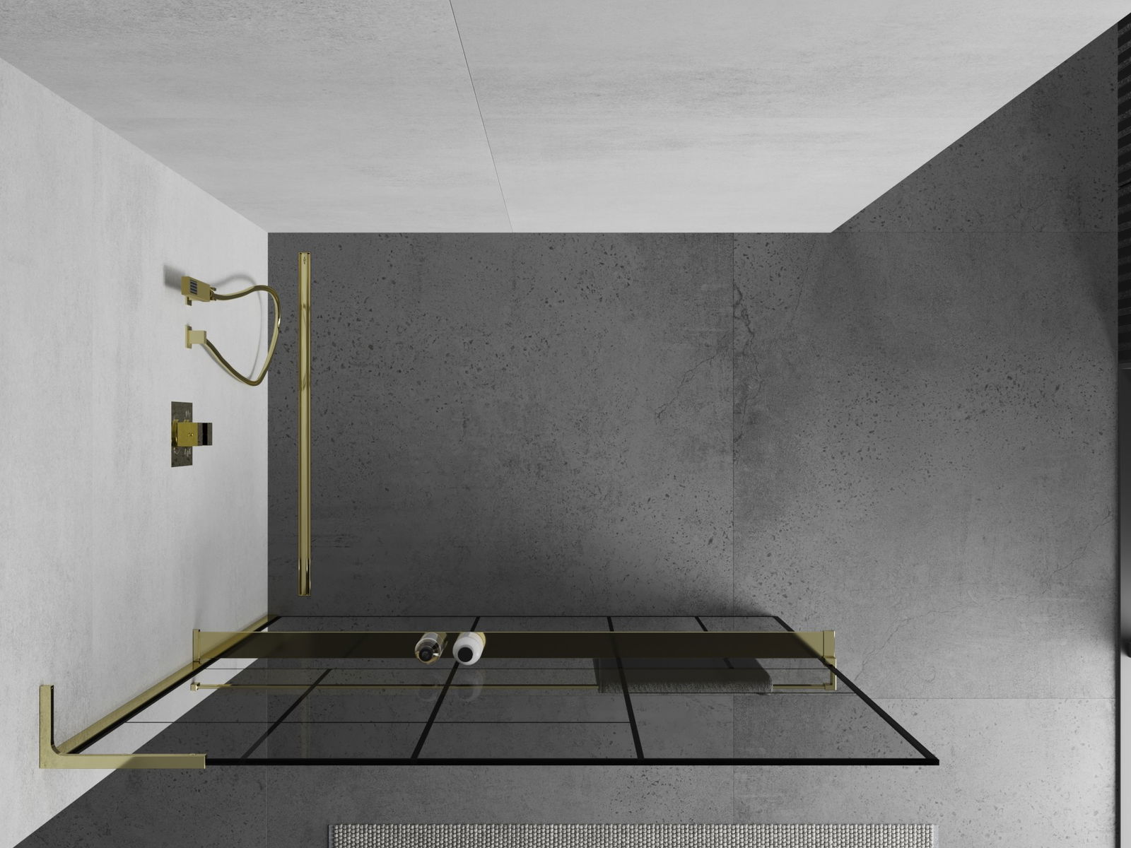Mexen Kioto+ L panou de duș cu raft Walk-in 110 x 200 cm, model negru, aurie - 800-110-123-50-78
