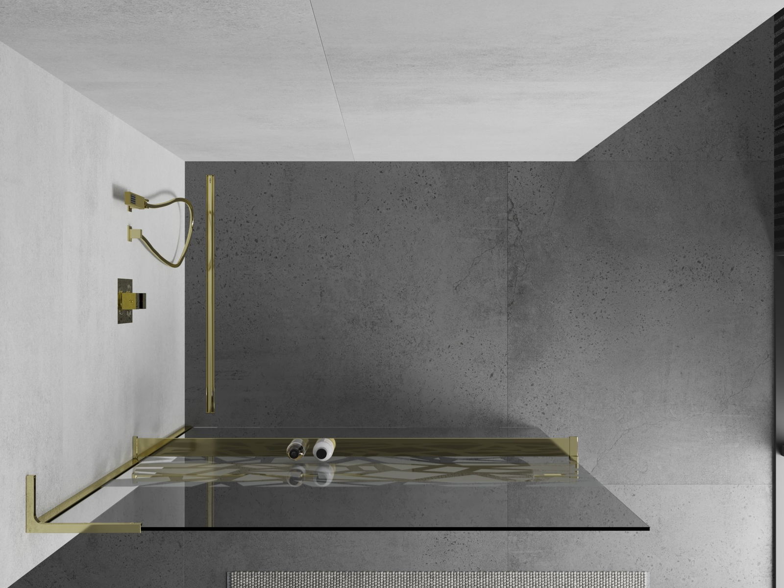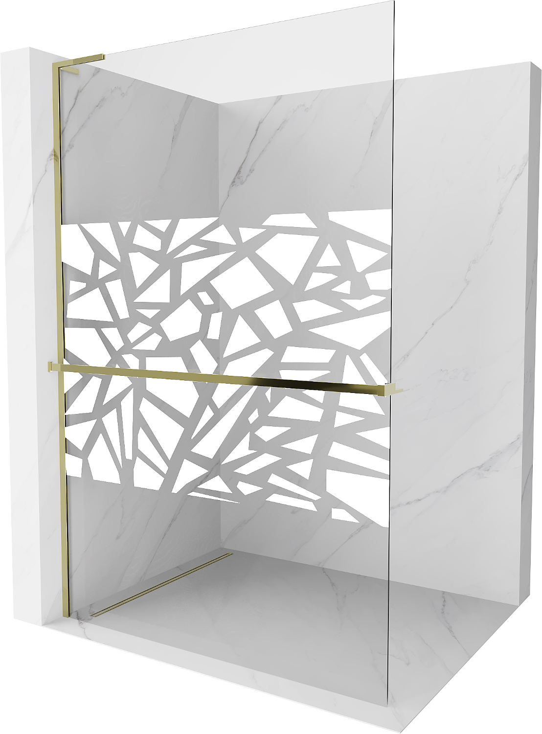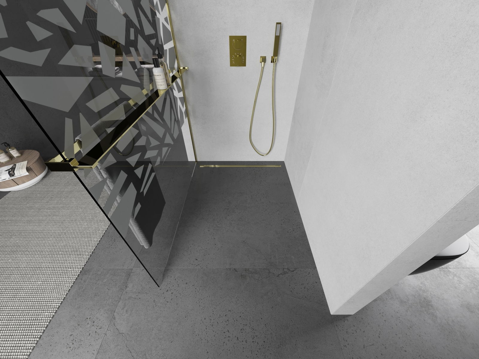 Mexen Kioto+ L Panel de duș cu raft Walk-in 90 x 200 cm, model alb, auriu - 800-090-123-50-85