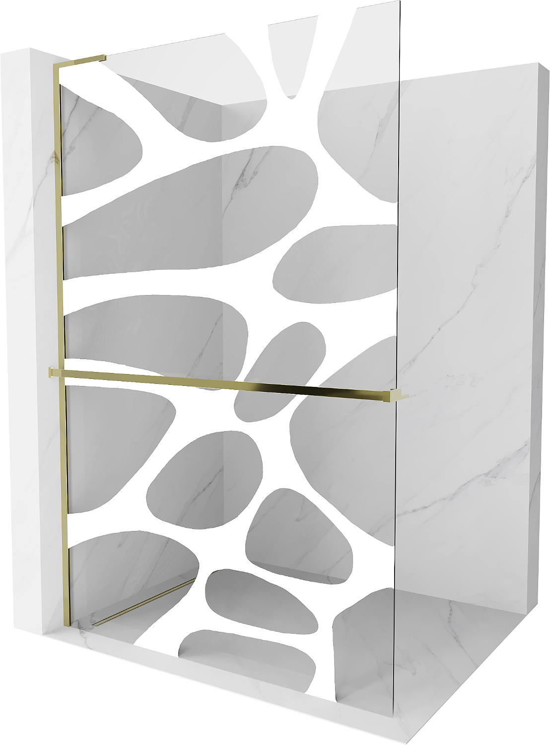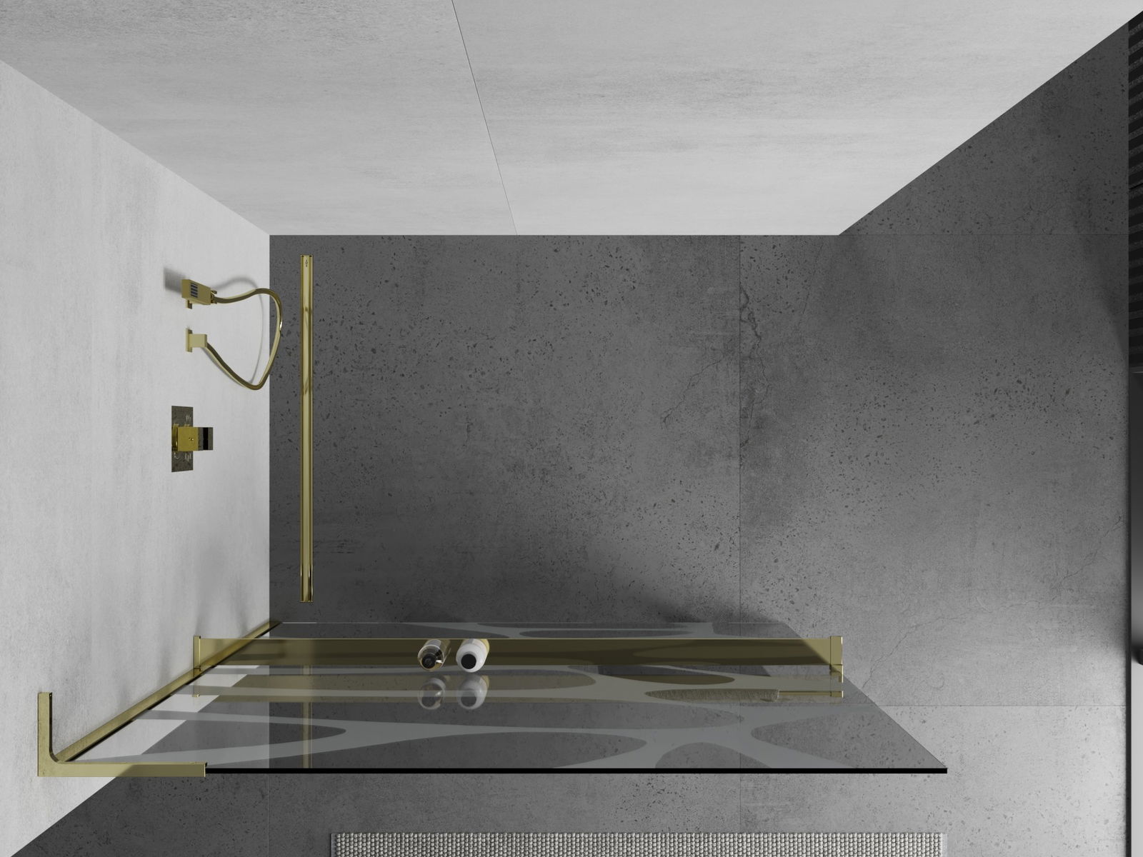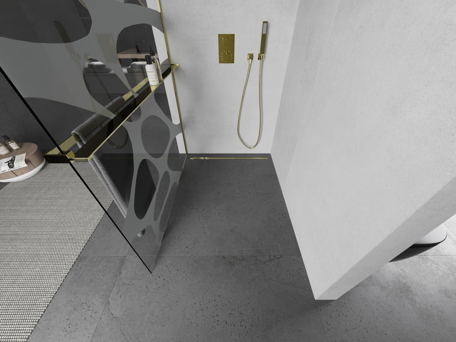 Mexen Kioto+ L panou de duș cu raft Walk-in 90 x 200 cm, val alb, auriu - 800-090-123-50-97
