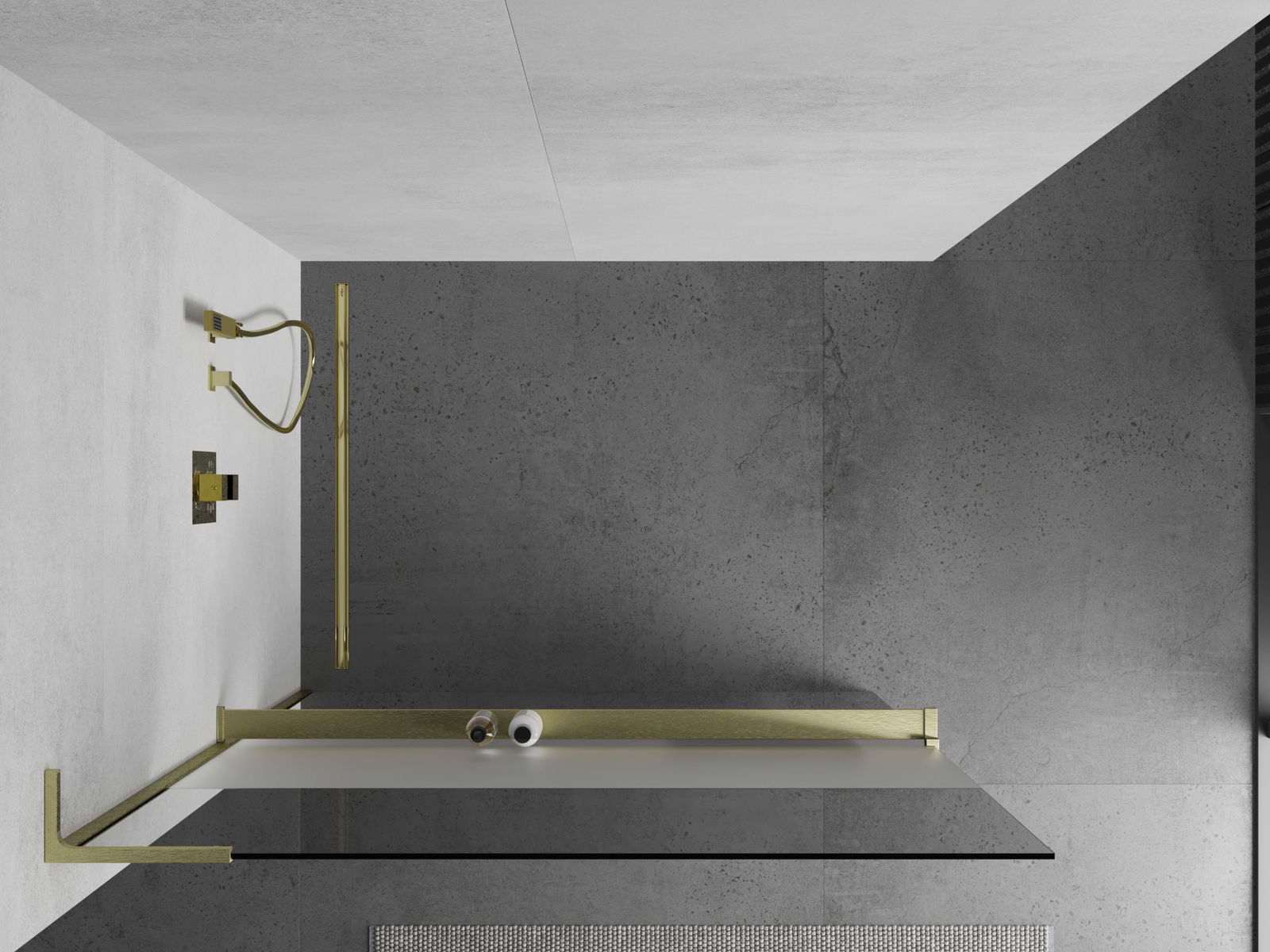 Mexen Kioto+ L perete de duș cu raft Walk-in 100 x 200 cm, transparent/satinat, aurie periată - 800-100-123-55-35