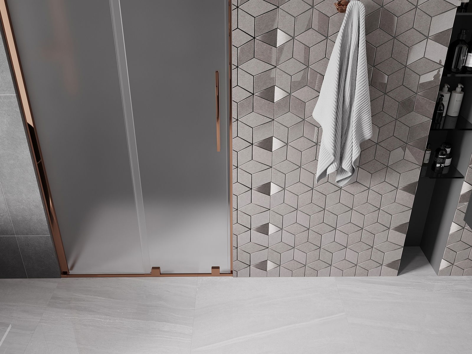 Mânerul practic și confortabil este realizat din oțel inoxidabil. Forma modernă, combinată cu un finisaj asortat cu culoarea profilelor, conferă ansamblului un aspect modern și elegant, subliniind estetica fiecărei băi.