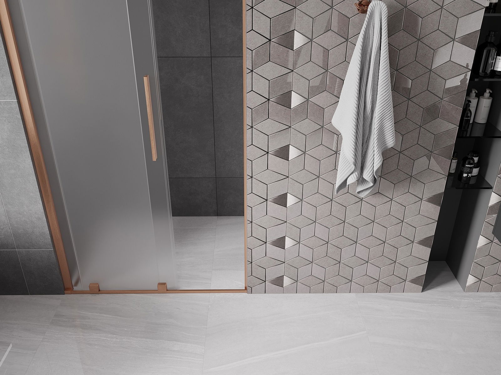 Mânerul practic și confortabil este realizat din oțel inoxidabil. Forma modernă, combinată cu un finisaj asortat cu culoarea profilelor, conferă ansamblului un aspect modern și elegant, subliniind estetica fiecărei băi.
