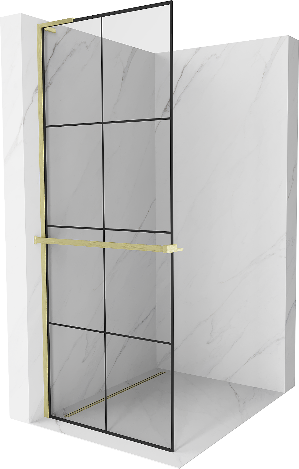 Mexen Kioto+ L panou de duș cu raft Walk-in 70 x 200 cm, grilaj negru, auriu periat - 800-070-123-55-77