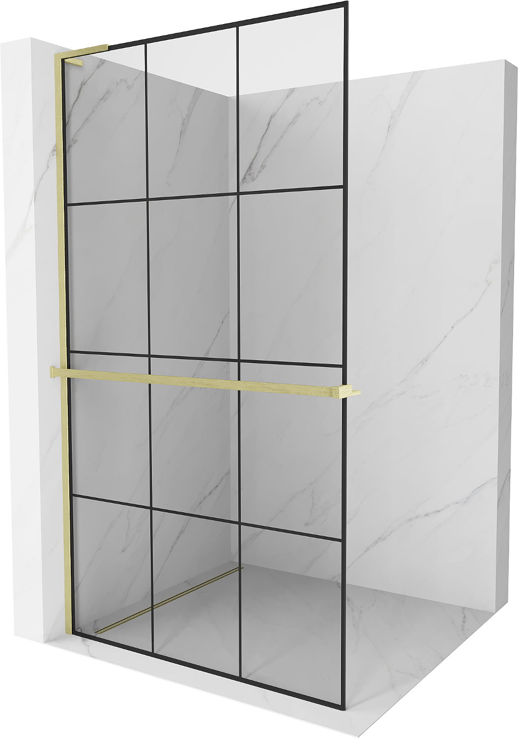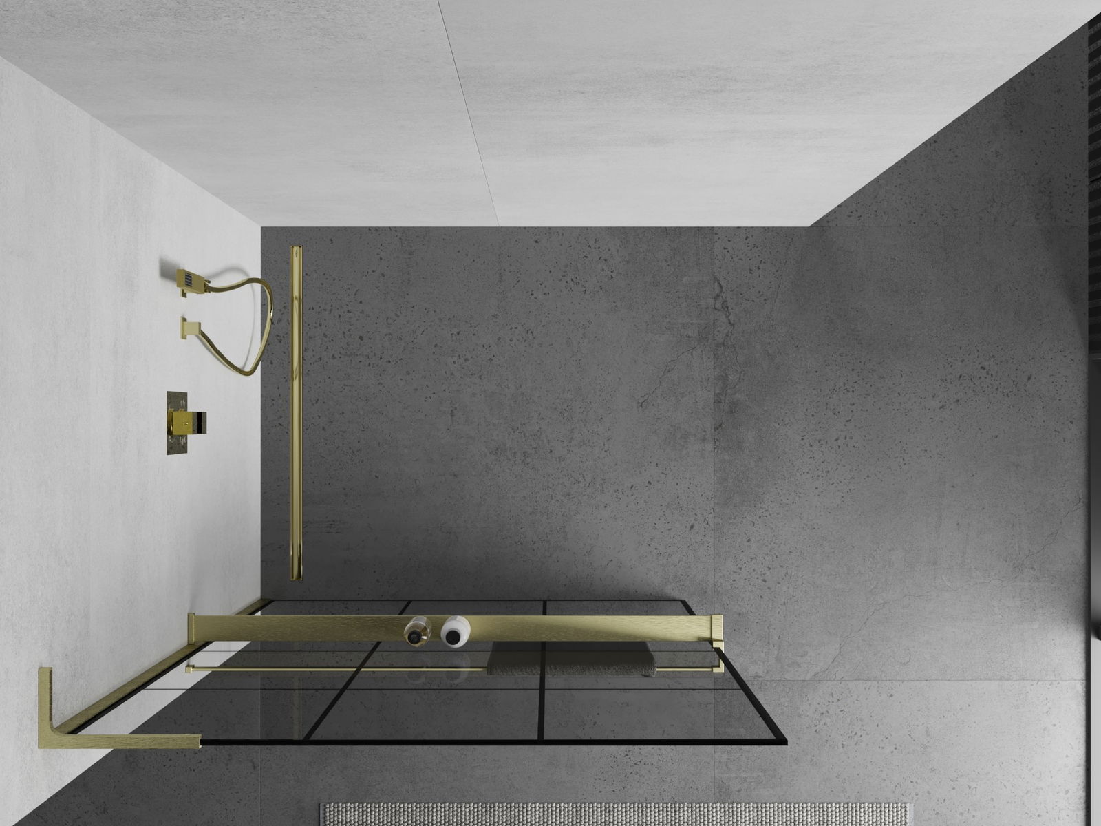 Mexen Kioto+ L panou de duș cu raft Walk-in 100 x 200 cm, carouri negre, auriu șlefuit - 800-100-123-55-77