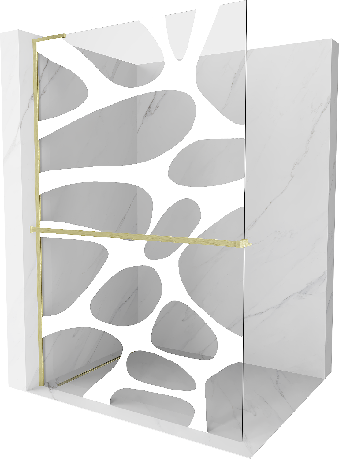 Mexen Kioto+ L perete de duș cu raft Walk-in 100 x 200 cm, val alb, auriu periat - 800-100-123-55-97