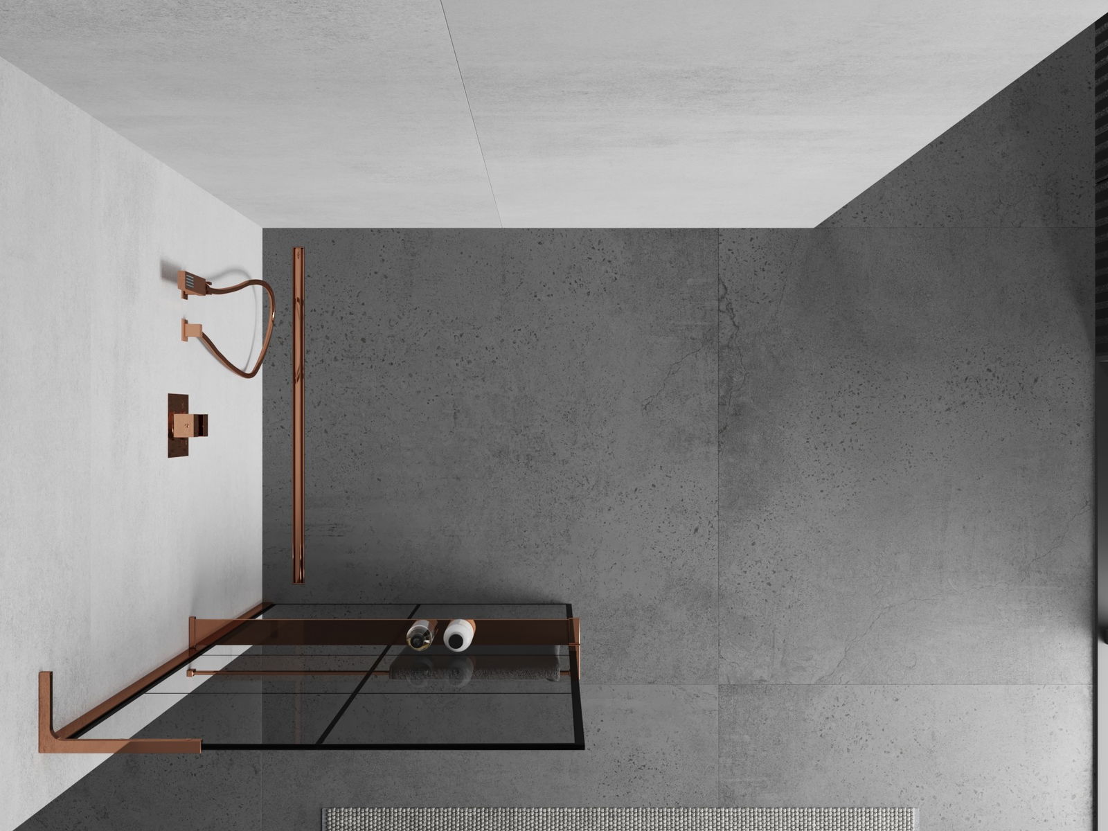 Mexen Kioto+ L perete de duș cu raft Walk-in 70 x 200 cm, grilaj negru, aur roz - 800-070-123-60-77