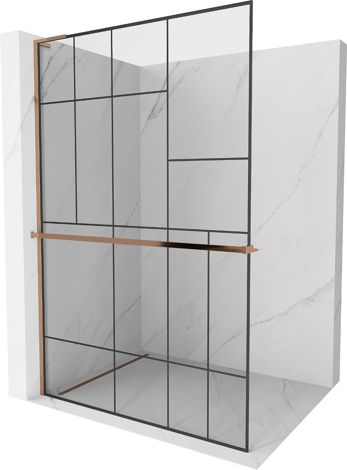 Mexen Kioto+ L perete de duș cu poliță Walk-in 70 x 200 cm, model negru, aur roz - 800-070-123-60-78
