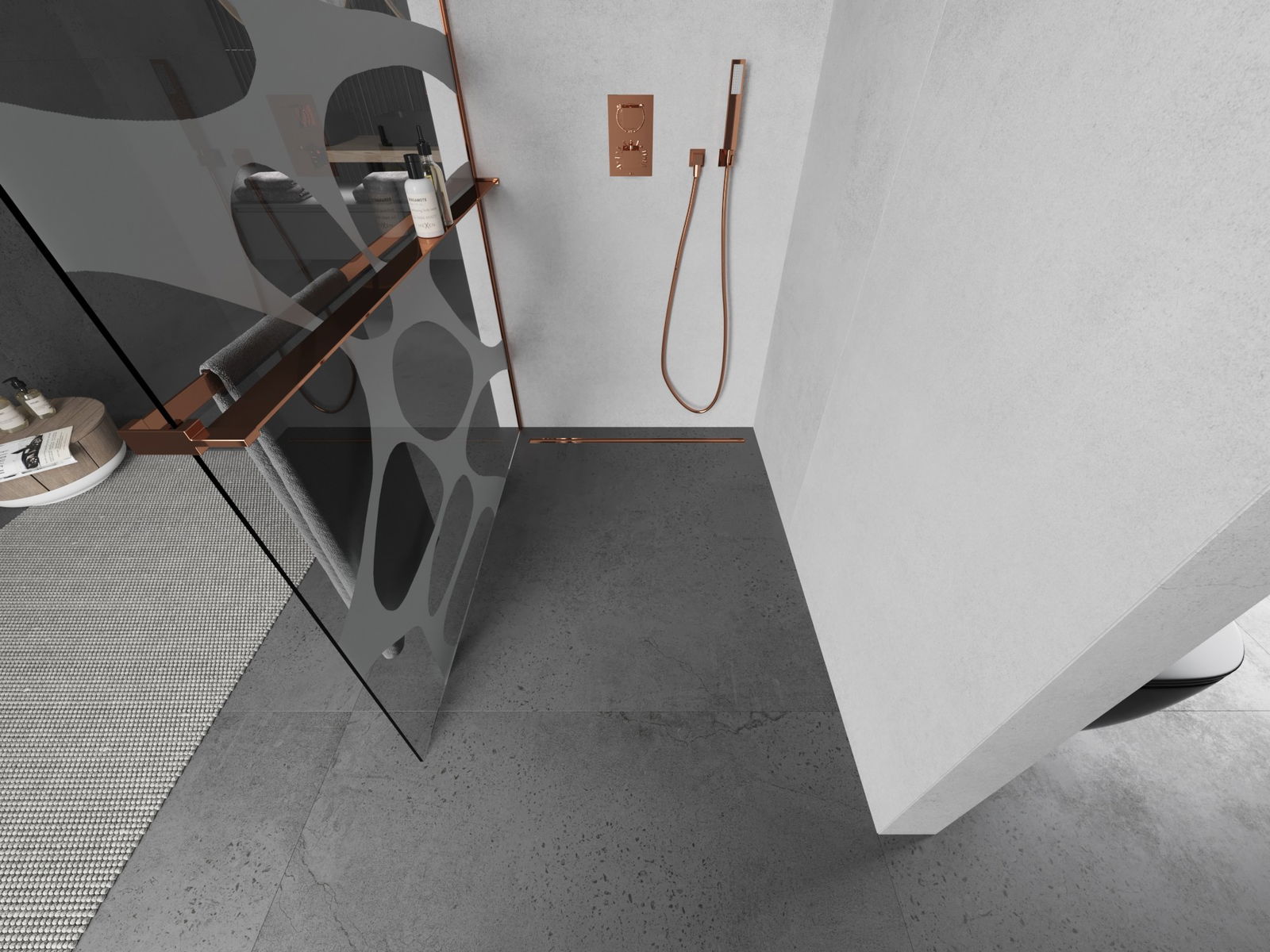 Mexen Kioto+ L panou de duș cu poliță Walk-in 90 x 200 cm, val alb, aur roz - 800-090-123-60-97