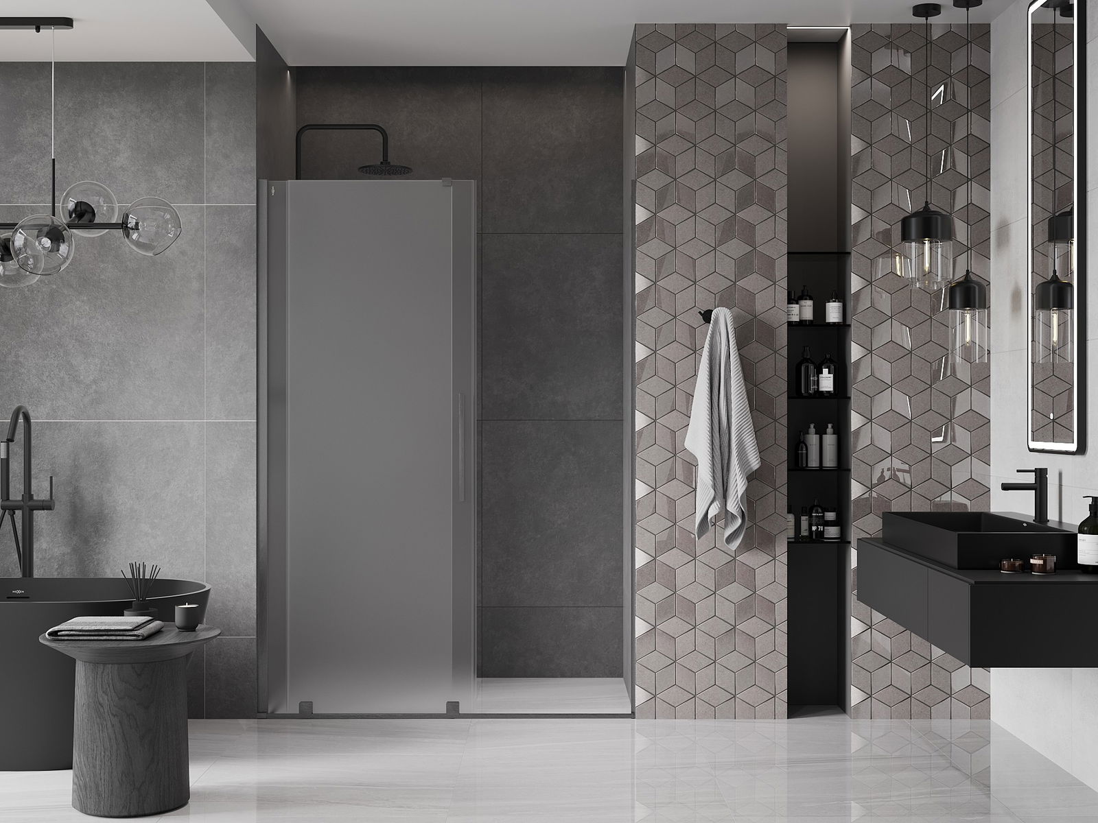Mânerul practic și confortabil este realizat din oțel inoxidabil. Forma modernă, combinată cu un finisaj asortat cu culoarea profilelor, conferă ansamblului un aspect modern și elegant, subliniind estetica fiecărei băi.