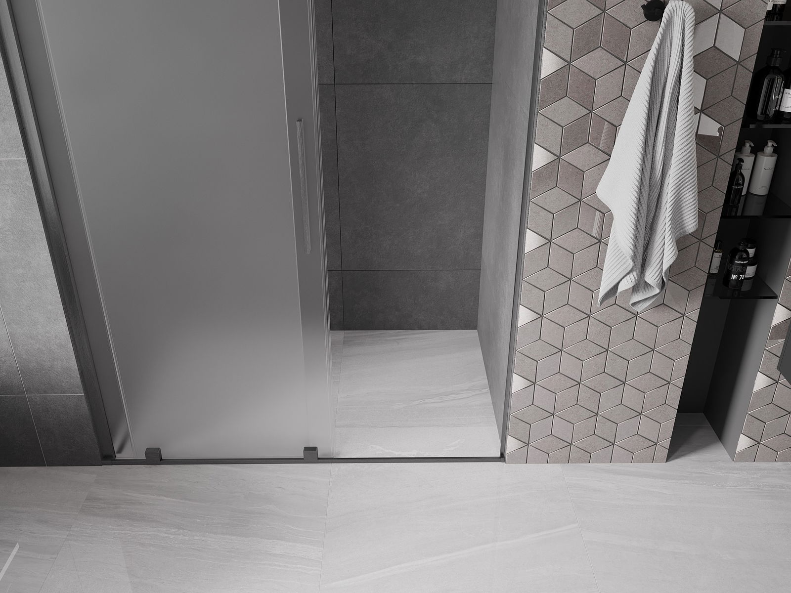 Mânerul practic și confortabil este realizat din oțel inoxidabil. Forma modernă, combinată cu un finisaj asortat cu culoarea profilelor, conferă ansamblului un aspect modern și elegant, subliniind estetica fiecărei băi.