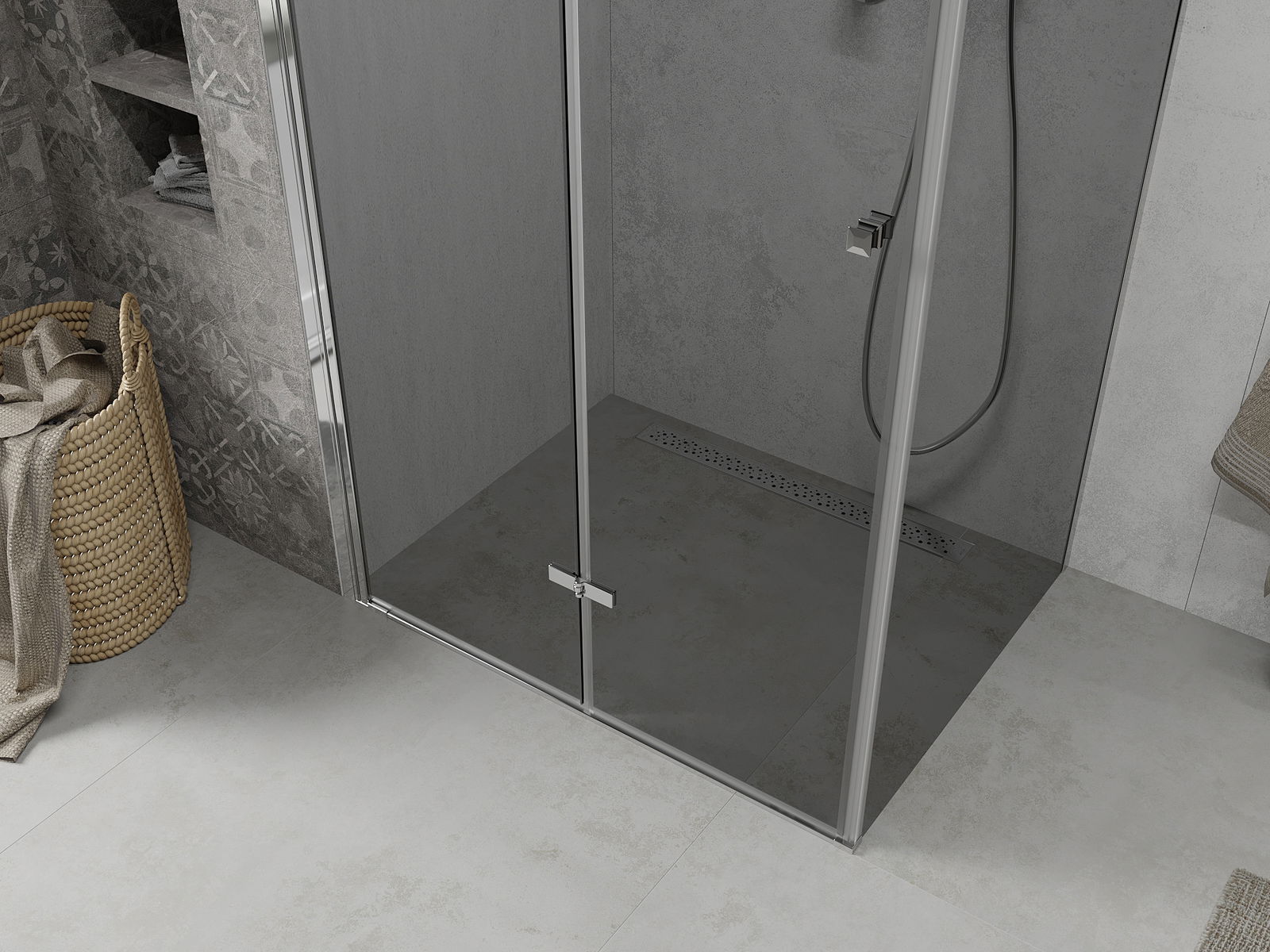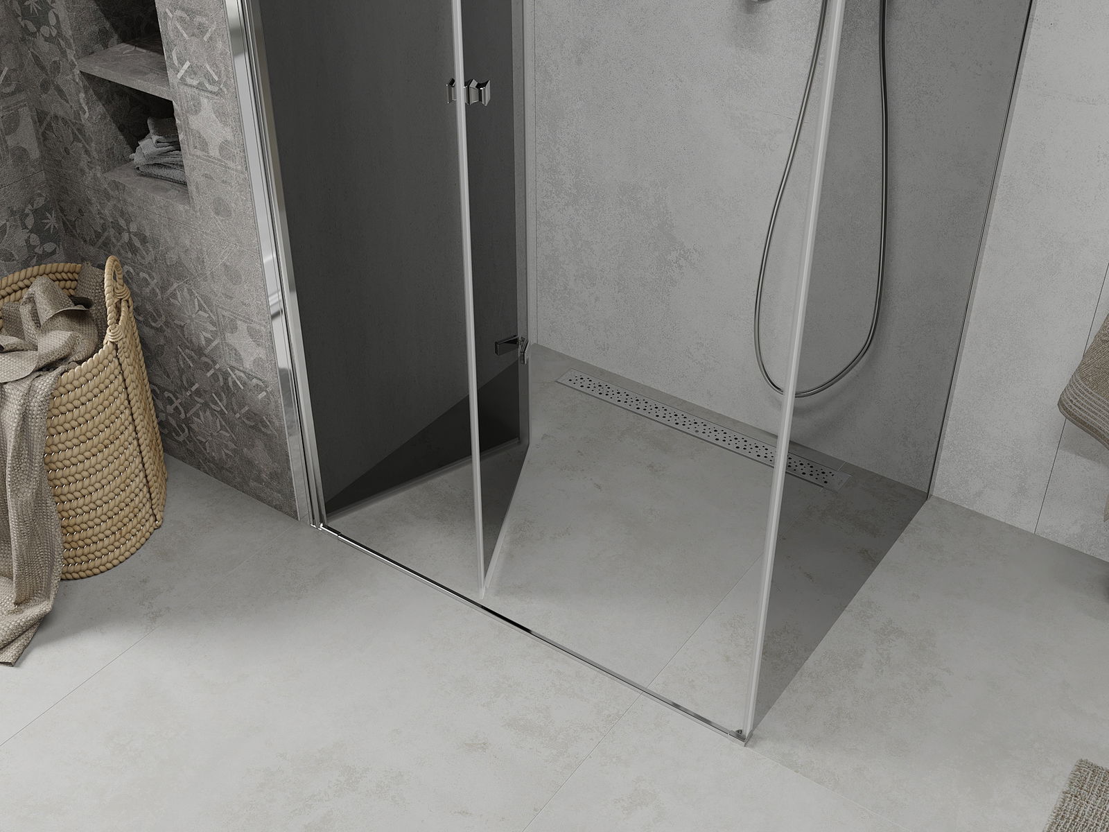 Posibilitatea de a plia ușa, atât în exterior, cât și în interior, vă permite să obțineți mai mult spațiu atunci când nu utilizați dușul. Este o soluție ideală pentru băile mai mici, folosind maxim suprafața disponibilă.