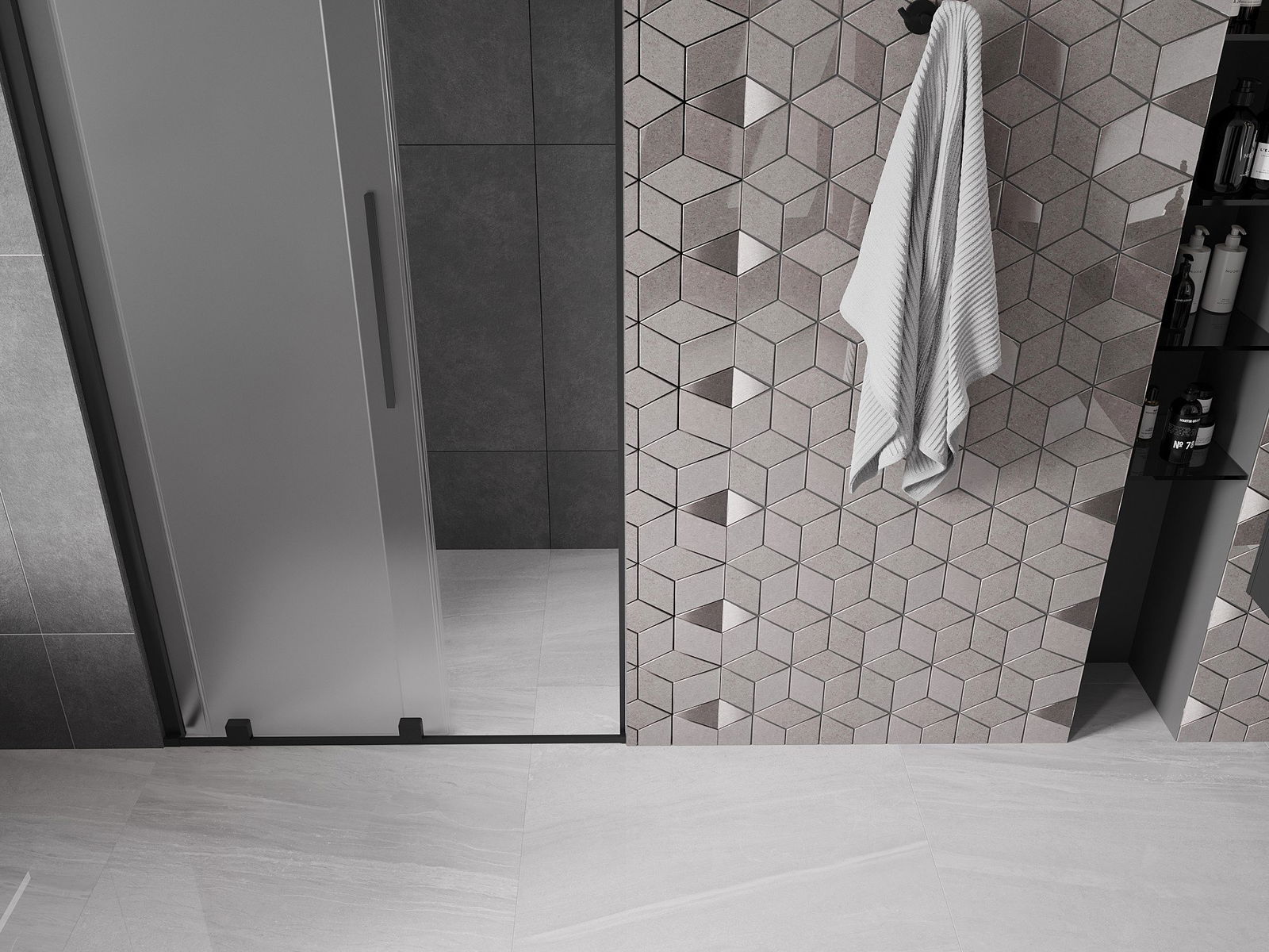 Mânerul practic și confortabil este realizat din oțel inoxidabil. Forma modernă, combinată cu un finisaj asortat cu culoarea profilelor, conferă ansamblului un aspect modern și elegant, subliniind estetica fiecărei băi.