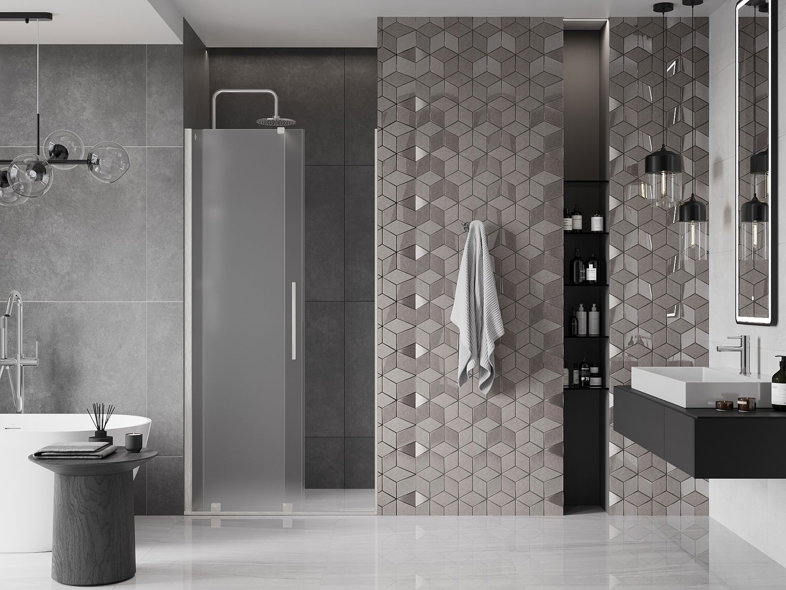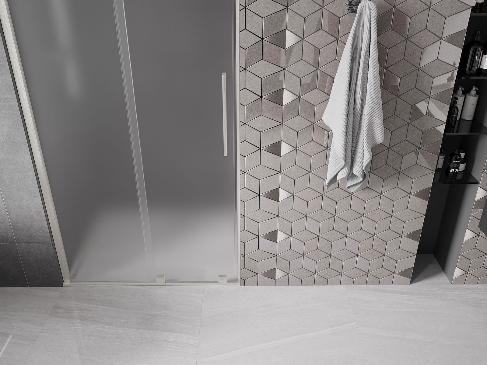 Mânerul practic și confortabil este realizat din oțel inoxidabil. Forma modernă, combinată cu un finisaj asortat cu culoarea profilelor, conferă ansamblului un aspect modern și elegant, subliniind estetica fiecărei băi.