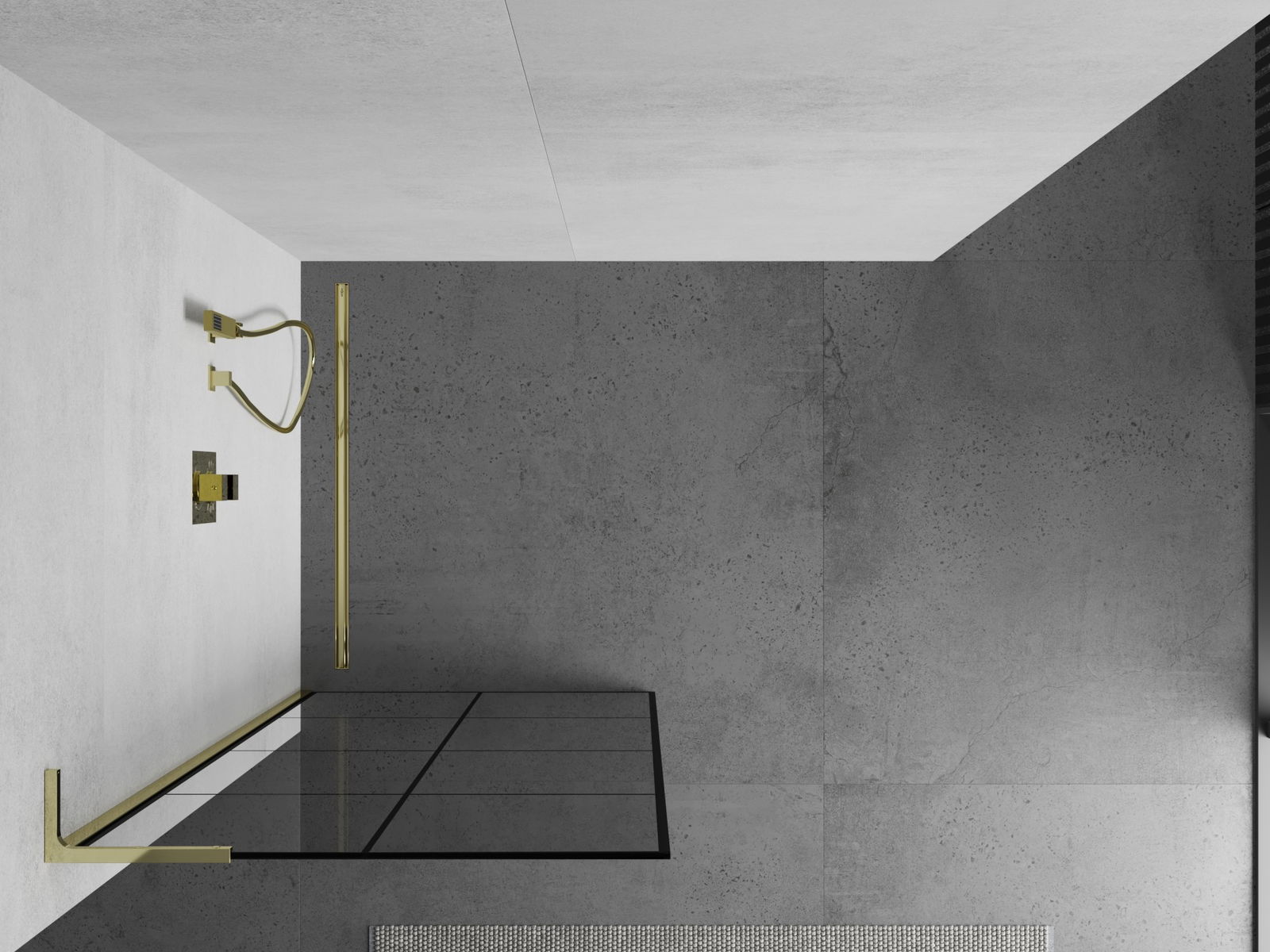 Mexen Kioto L perete duș Walk-in 80 x 200 cm, model negru, aurie - 800-080-103-50-77