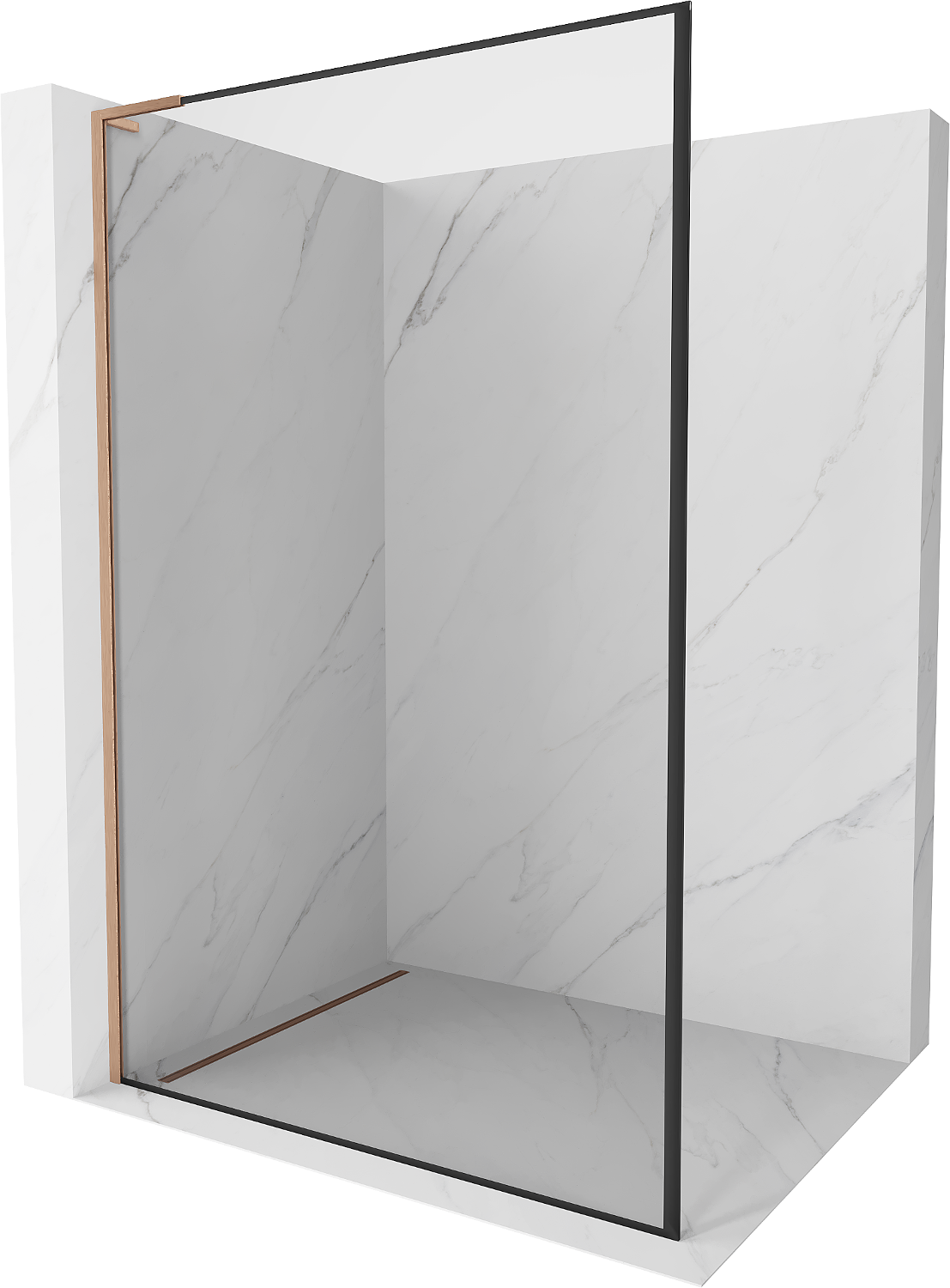 Mexen Kioto L perete duș Walk-in 110 x 200 cm, cadru negru, cupru periat - 800-110-103-65-70