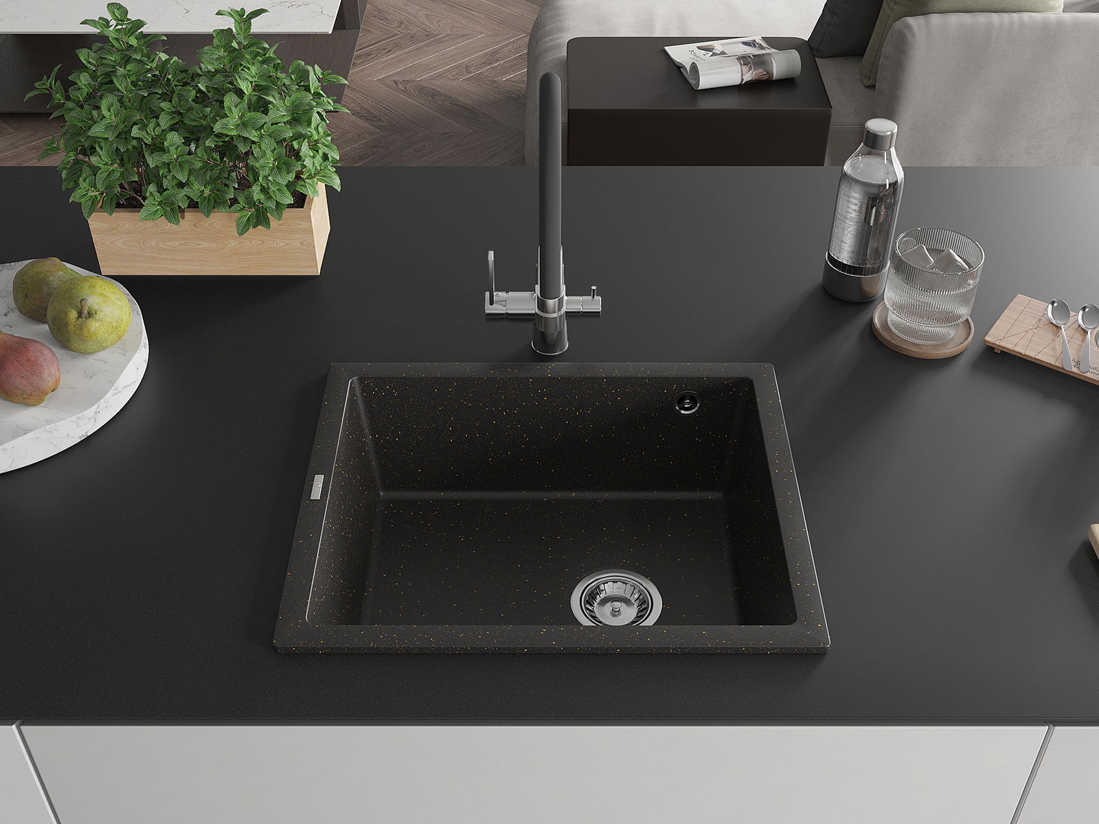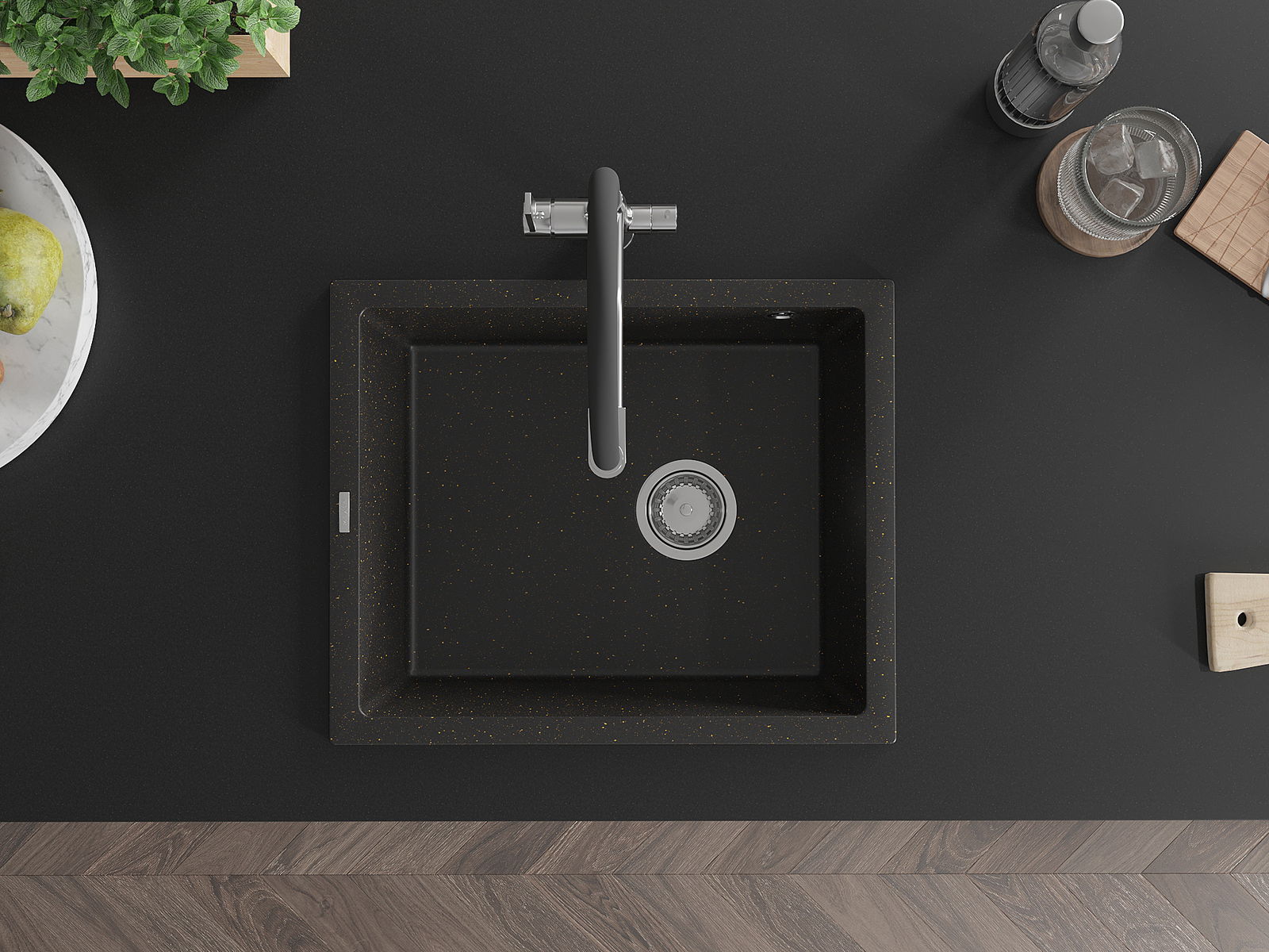 Mexen Pedro chiuvetă granit 1-camere 560 x 460 mm, negru/auriu metalic, sifon crom - 6508561000-75