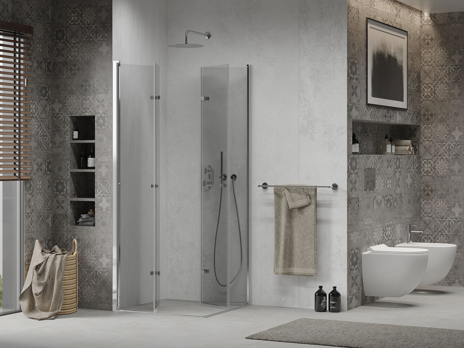 Datorită posibilității de a plia ușile atât în exterior, cât și în interior, obținem mult mai mult spațiu atunci când nu folosim dușul. Este o soluție ideală pentru băile mici.
