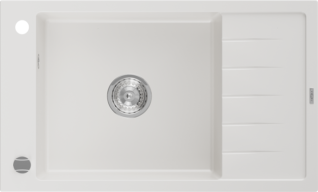 Mexen Elias chiuvetă de granit cu 1 compartiment și scurgător 795 x 480 mm, albă, sifon crom - 6511791005-20