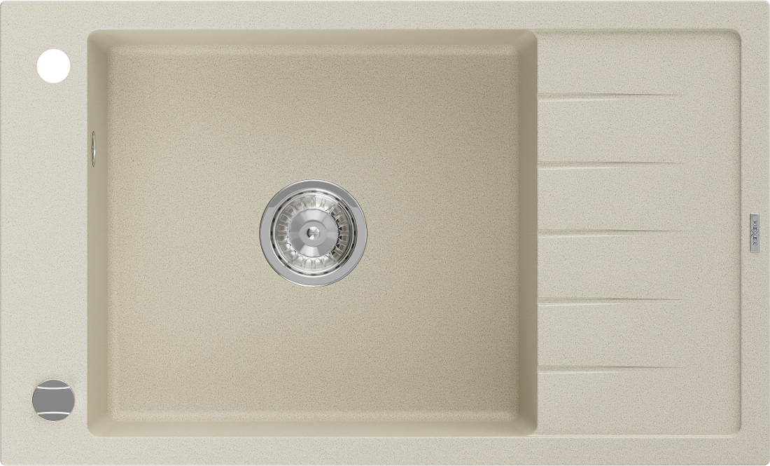 Mexen Elias chiuvetă de bucătărie din granit cu 1 compartiment și picurător 795 x 480 mm, bej, sifon crom - 6511791005-69