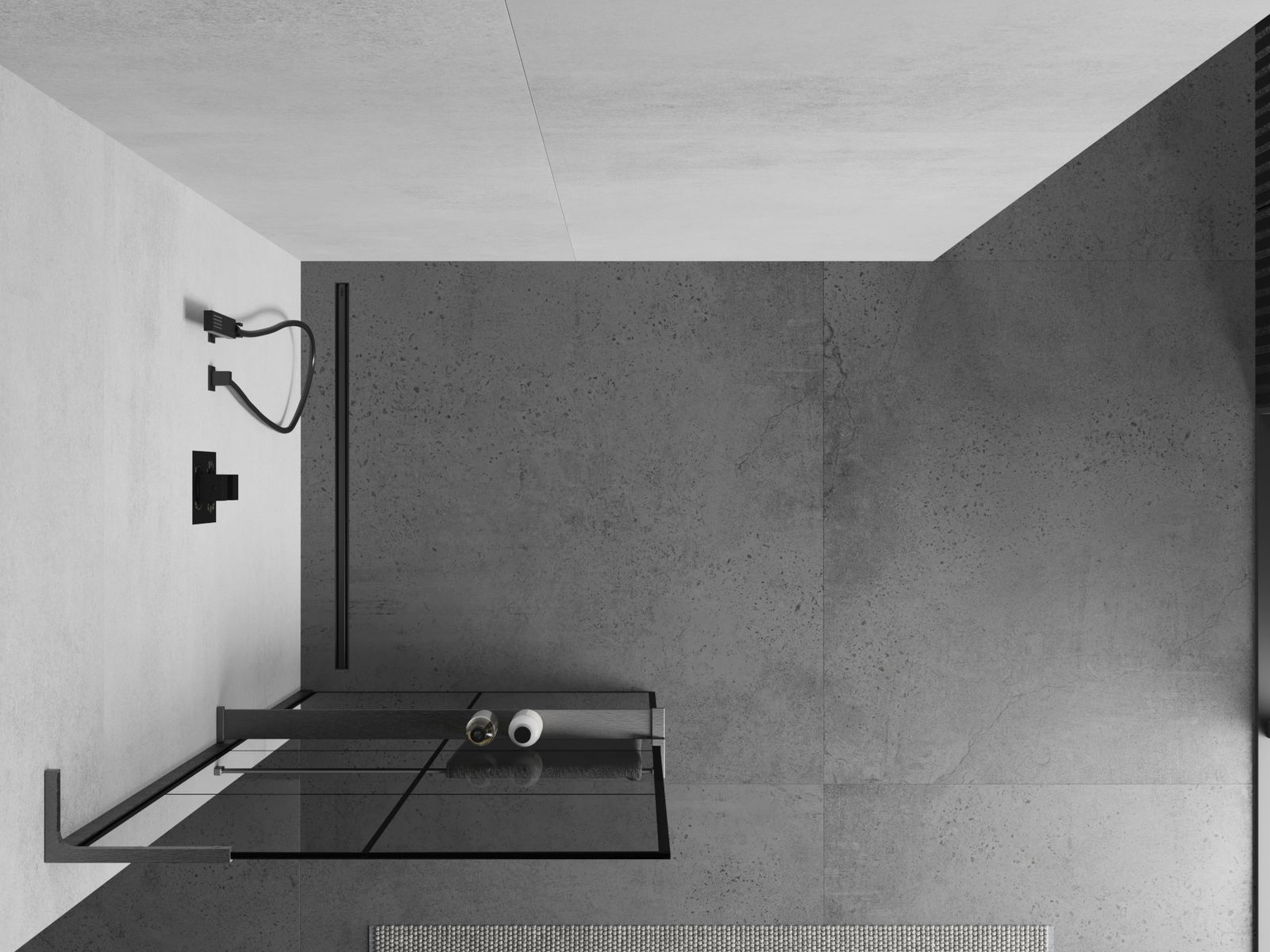 Mexen Kioto+ L panou de duș cu raft Walk-in 80 x 200 cm, grilaj negru, gri pistol periat - 800-080-123-66-77
