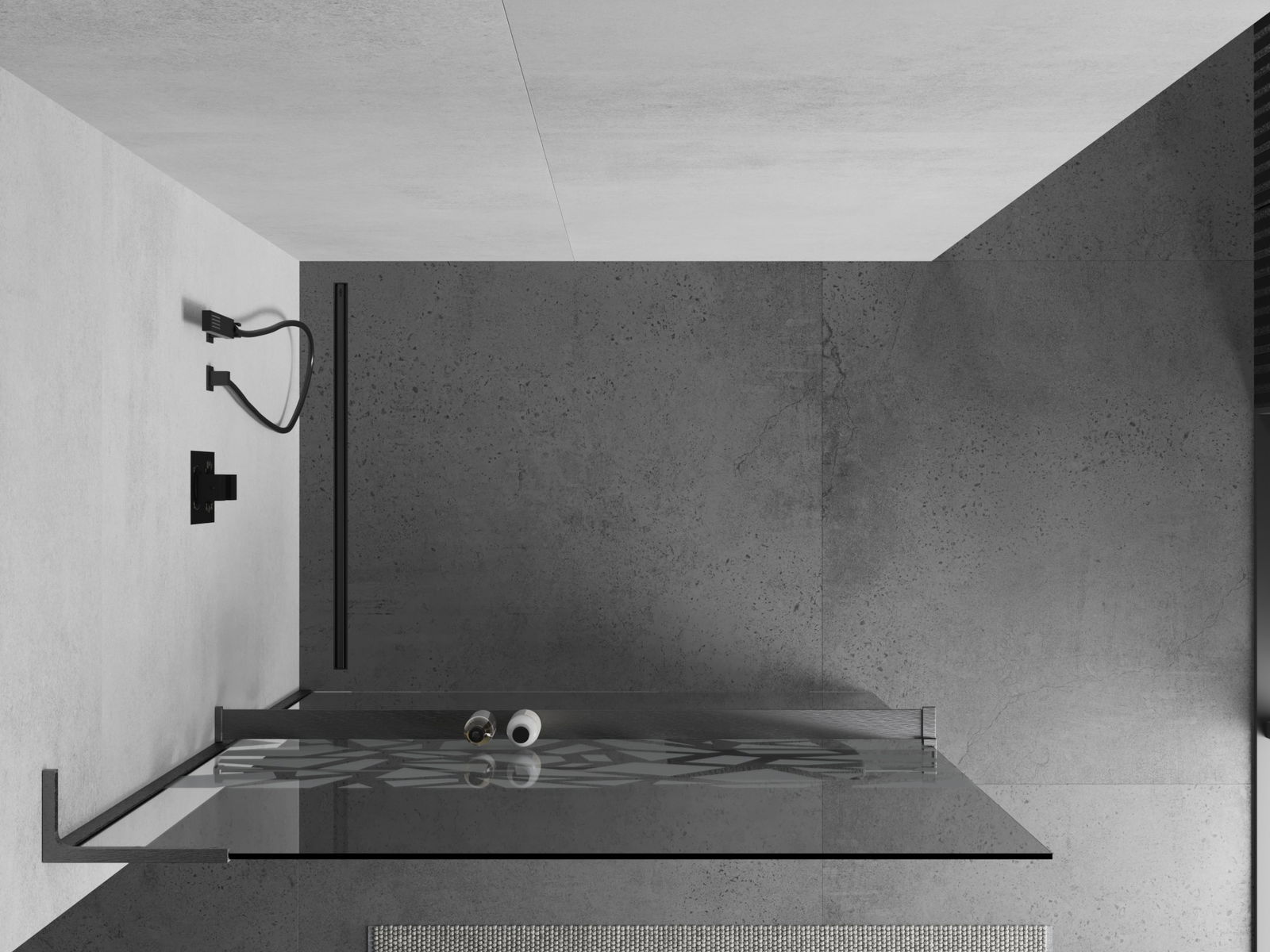 Mexen Kioto+ L perete de duș cu raft Walk-in 90 x 200 cm, model alb, gri armat periat - 800-090-123-66-85