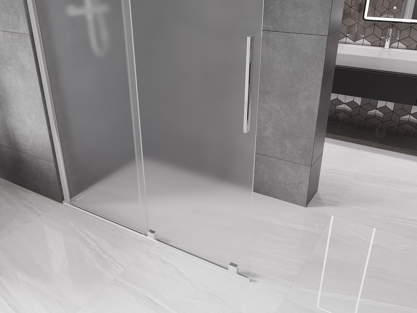 Mânerul practic și confortabil este realizat din oțel inoxidabil. Forma modernă, combinată cu un finisaj asortat cu culoarea profilelor, conferă ansamblului un aspect modern și elegant, subliniind estetica fiecărei băi.