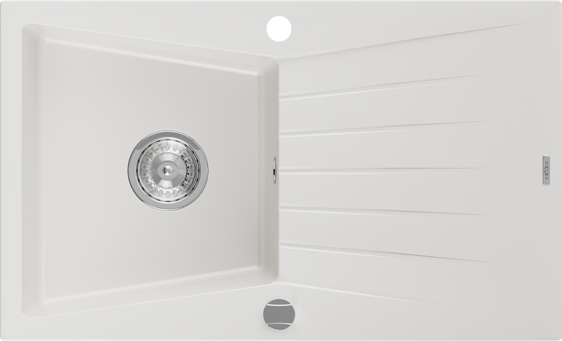 Mexen Cesar chiuvetă din granit cu 1 compartiment și scurgător 775 x 470 mm, alb, sifon crom - 6514771010-20