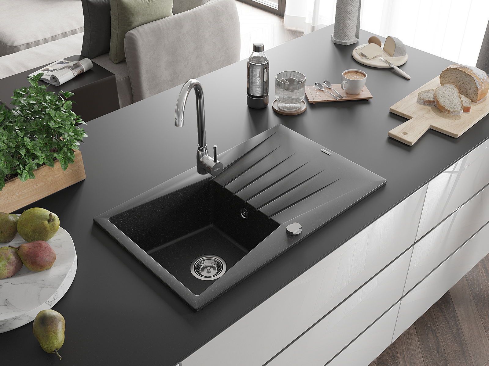 Chiuveta a fost realizată din granit de înaltă calitate. Reprezintă un complement elegant și, mai presus de toate, practic pentru orice bucătărie, indiferent de stilul său. Calitatea înaltă și durabilitatea granitului asigură o utilizare de lungă durată.
