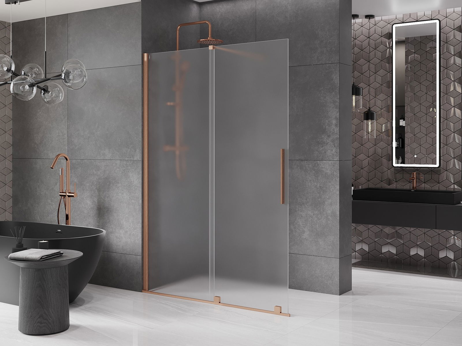 Mexen Velar perete de duș glisant Walk-in 150 x 200 cm, înghețat 8 mm, cupru periat - 871-150-000-33-65