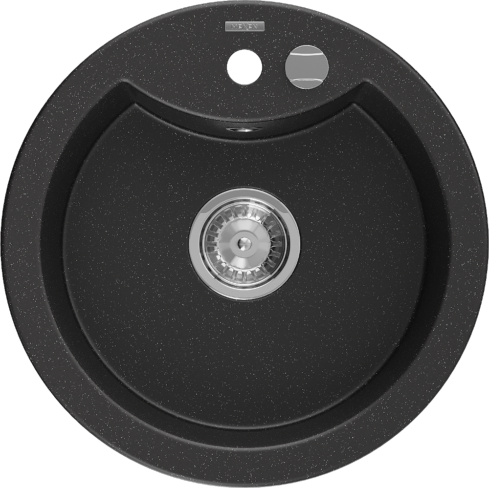 Mexen Diego chiuvetă din granit cu 1 compartiment 488 x 480 mm, negru/argintiu metalizat, sifon cromat - 6512481000-73