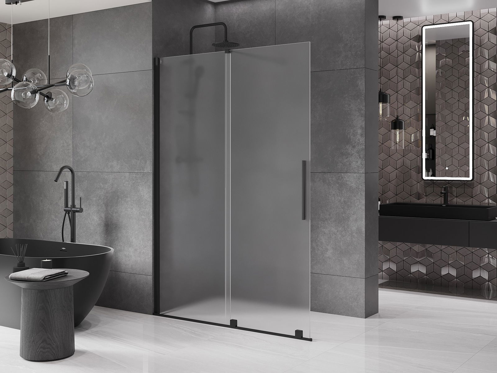 Mexen Velar perete de duș glisant Walk-in 160 x 200 cm, înghețat 8 mm, negru - 871-160-000-33-70