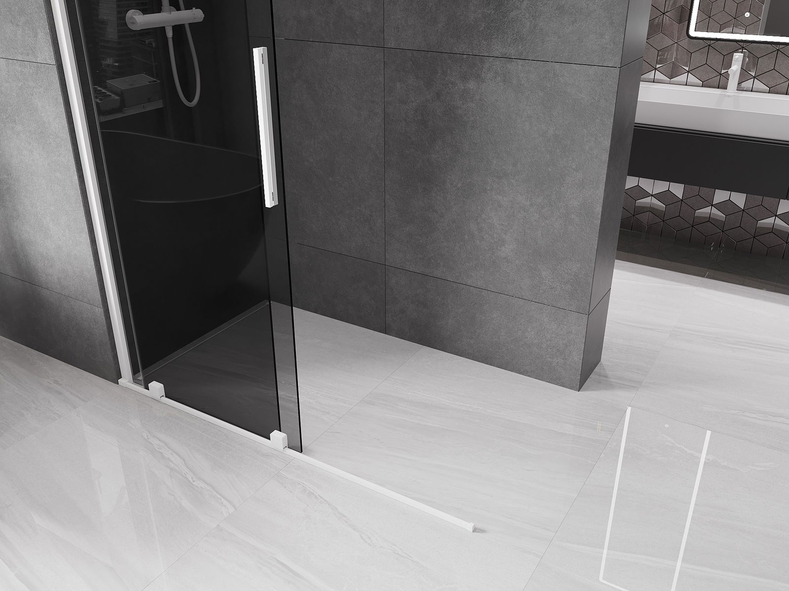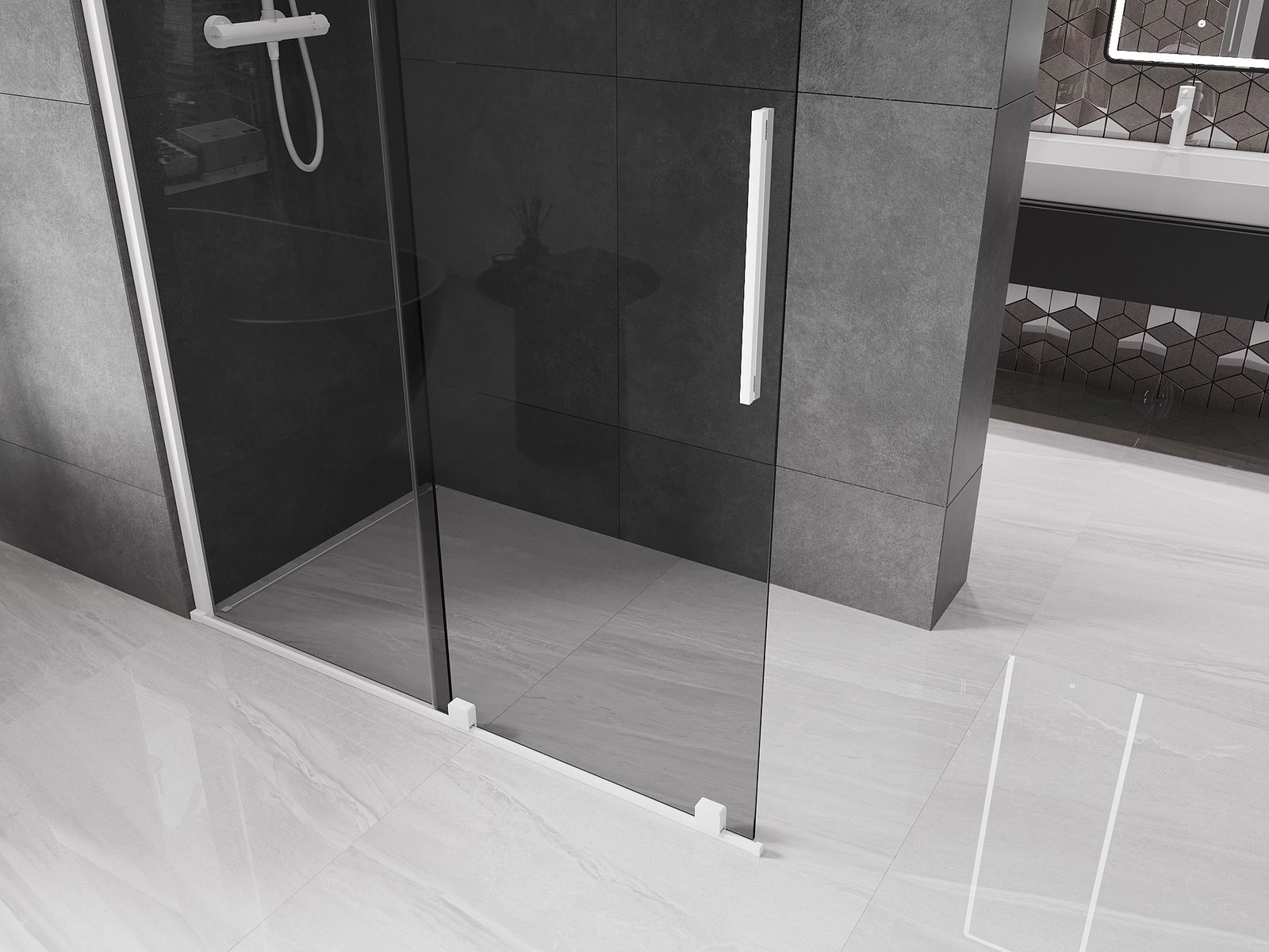 Mexen Velar perete de duș glisant Walk-in 140 x 200 cm, grafit 8 mm, alb - 871-140-000-43-20