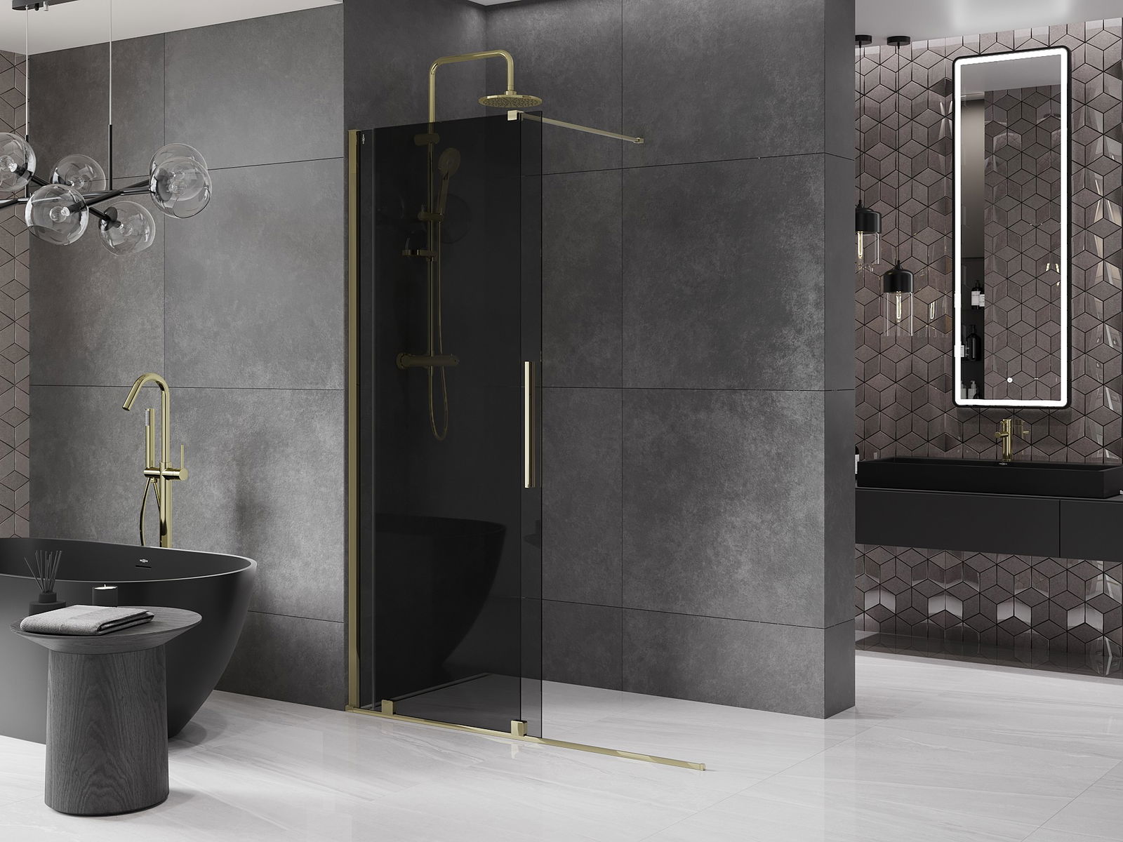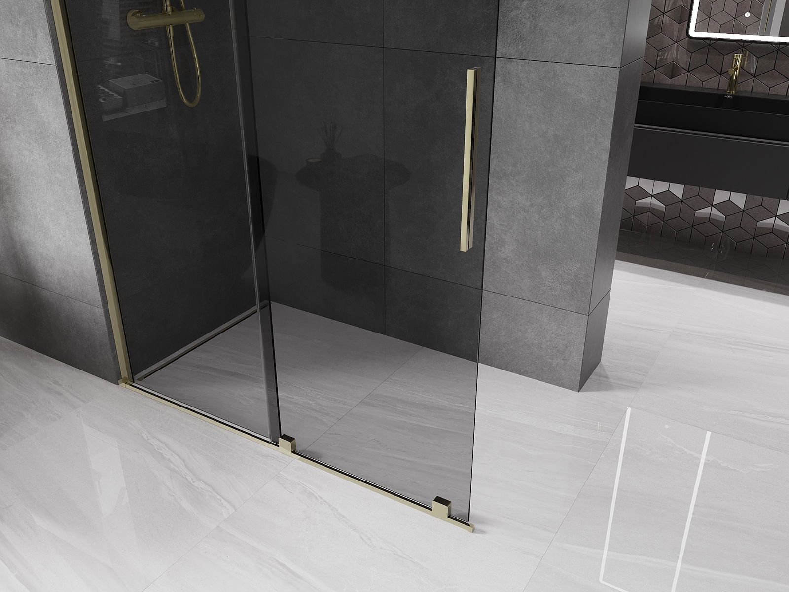 Mexen Velar perete duș glisant Walk-in 140 x 200 cm, grafit 8 mm, auriu - 871-140-000-43-50