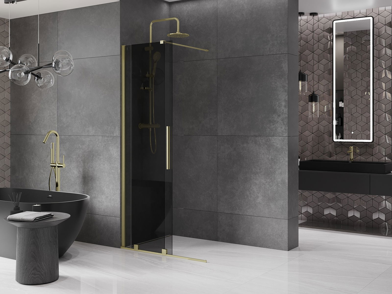 Mexen Velar perete de duș glisant Walk-in 70 x 200 cm, grafit 8 mm, auriu periat - 871-070-000-43-55