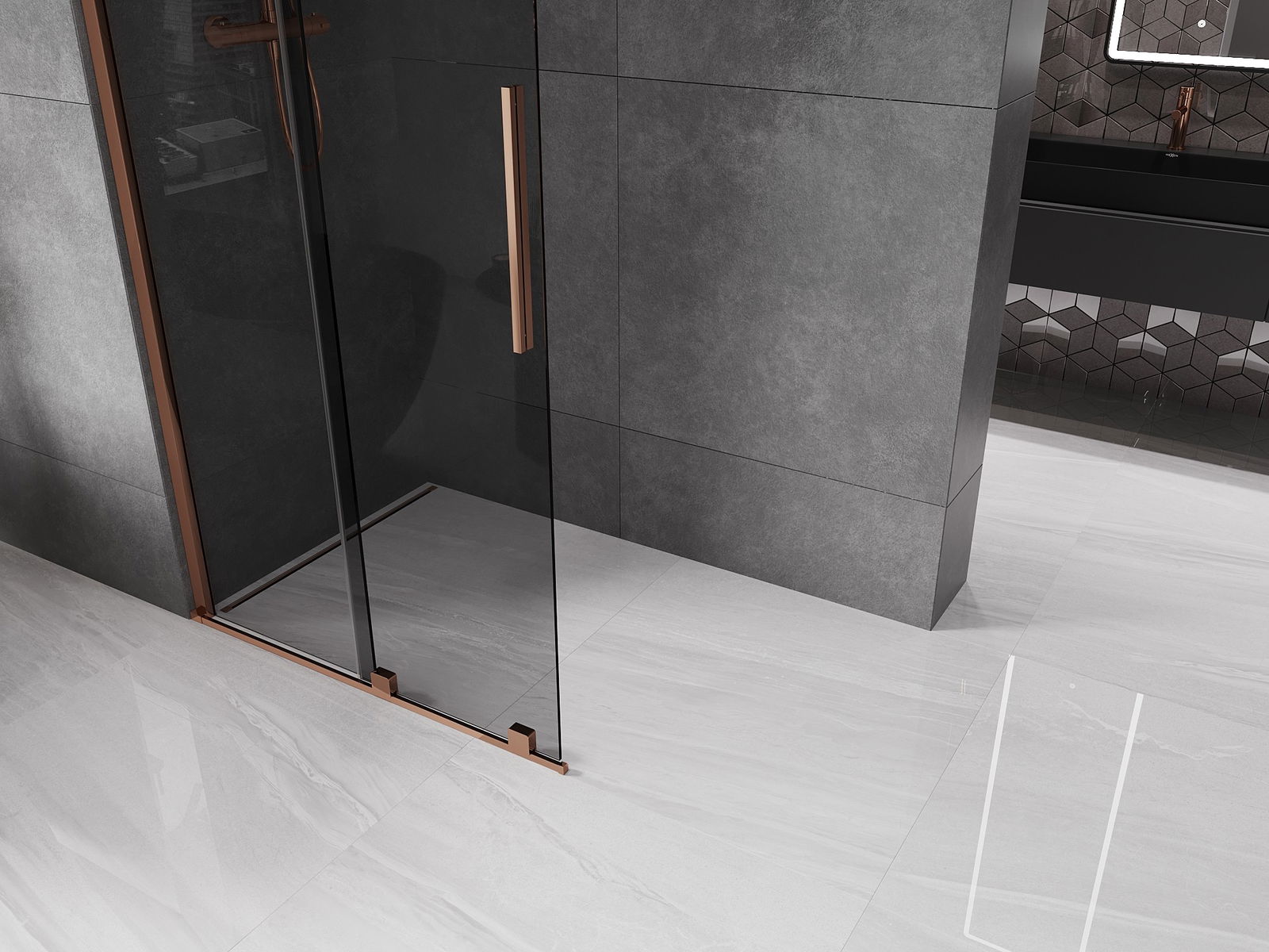 Mexen Velar perete de duș extins Walk-in 70 x 200 cm, grafit 8 mm, aur roz - 871-070-000-43-60
