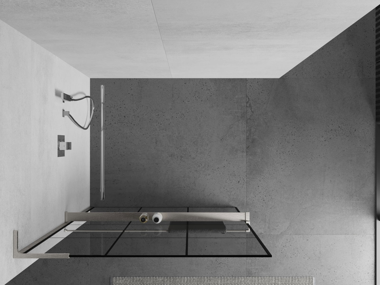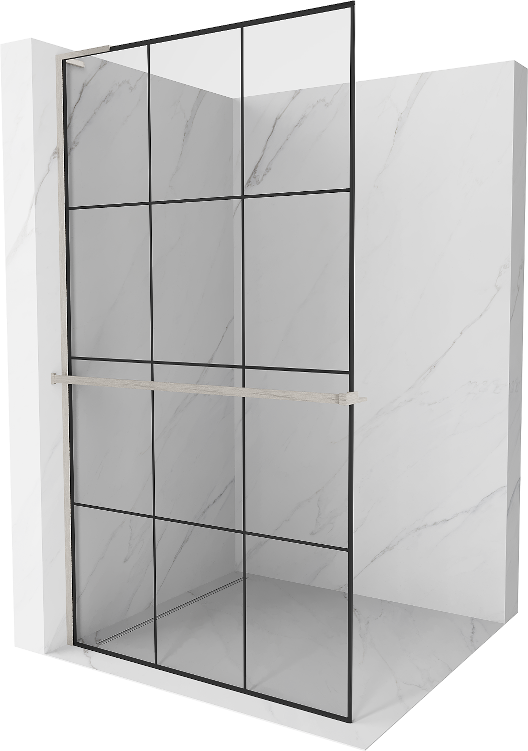 Mexen Kioto+ L perete de duș cu raft Walk-in 110 x 200 cm, grilaj negru, nichel periat - 800-110-123-97-77