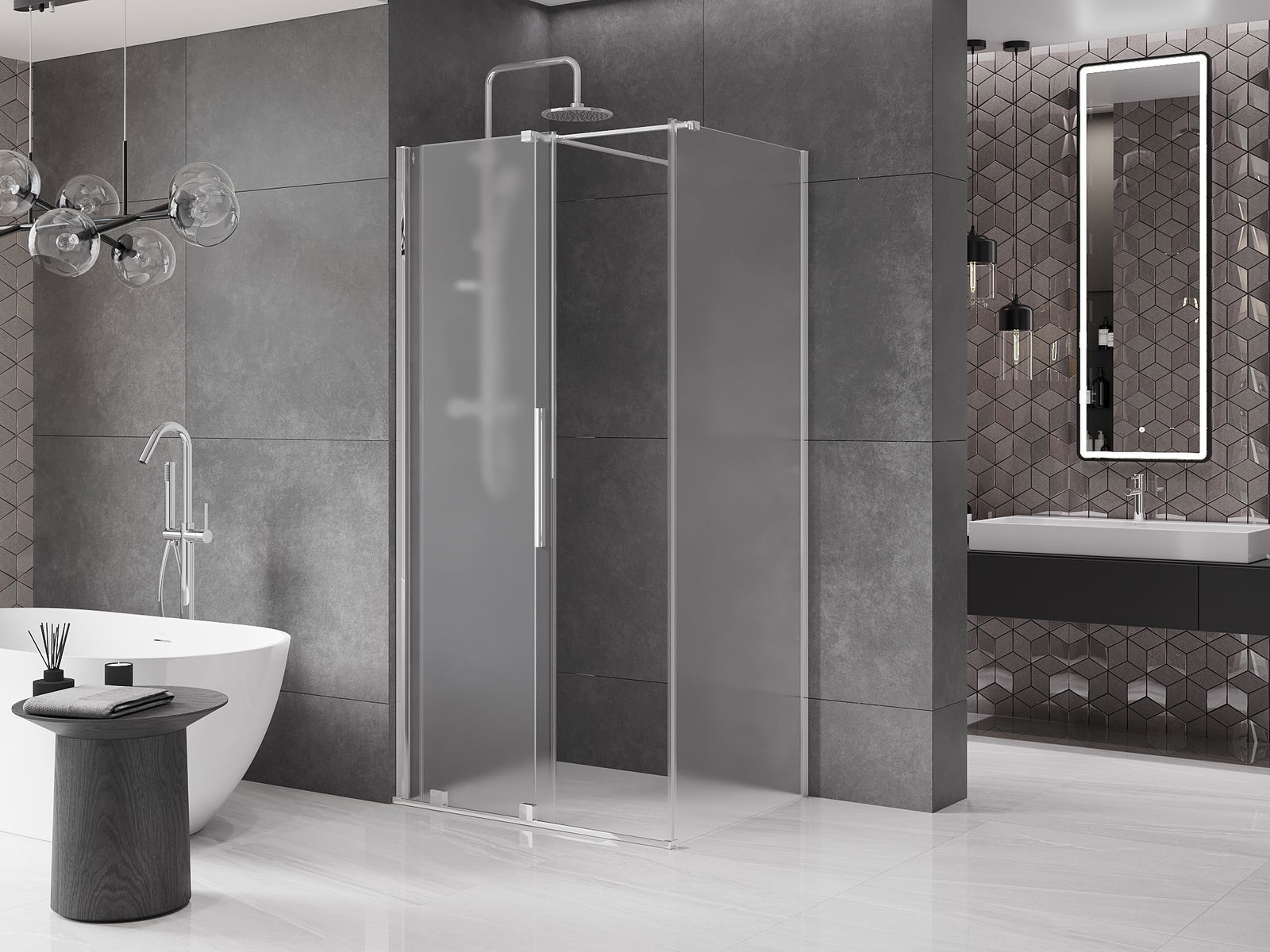Mânerul practic și confortabil este realizat din oțel inoxidabil. Forma modernă, combinată cu un finisaj asortat cu culoarea profilelor, conferă ansamblului un aspect modern și elegant, subliniind estetica fiecărei băi.