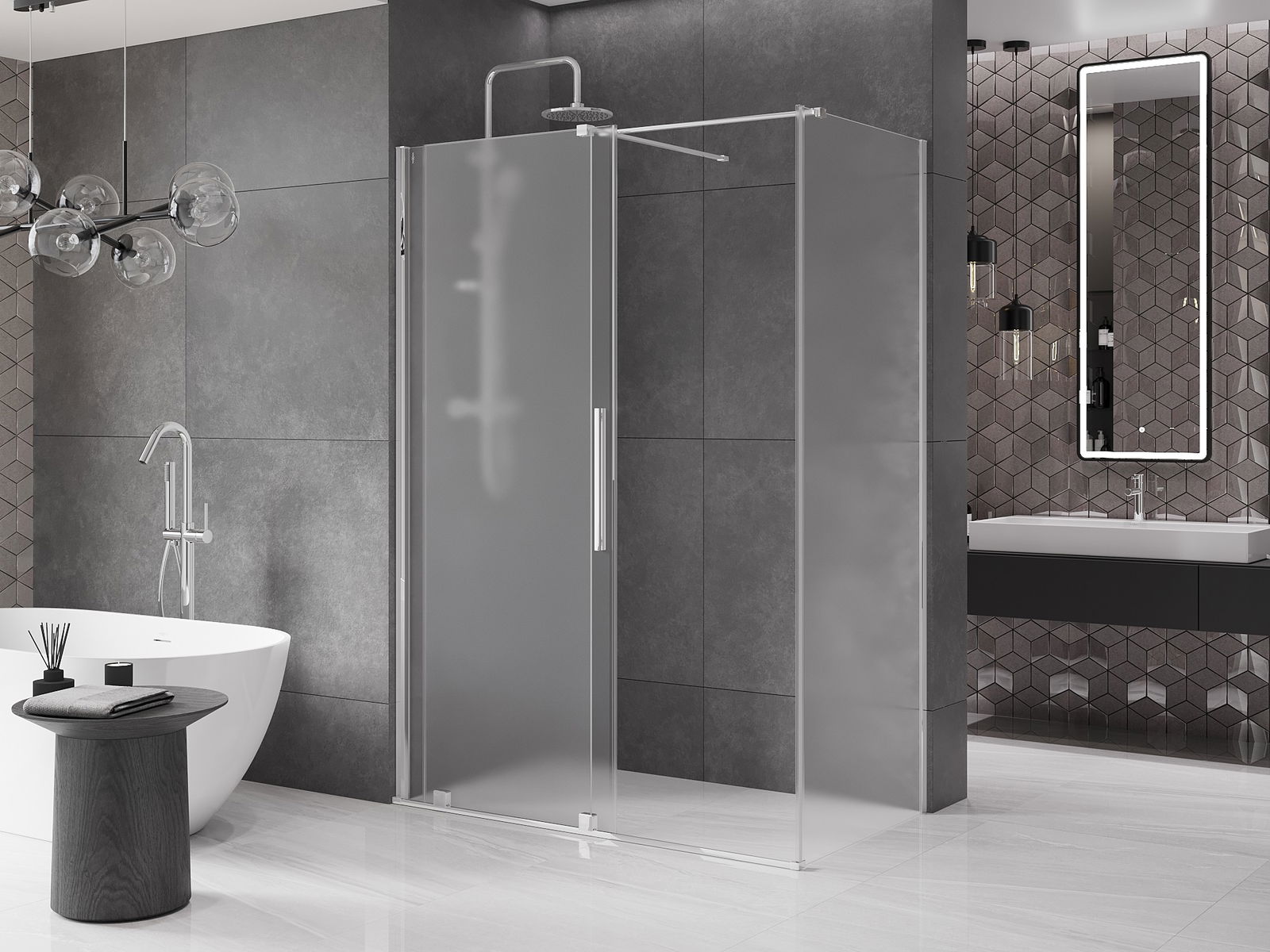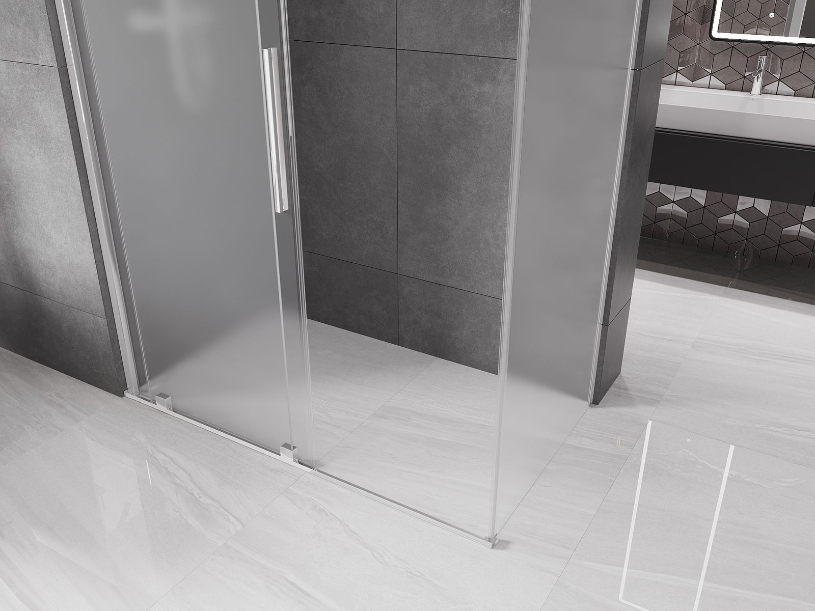 Mânerul practic și confortabil este realizat din oțel inoxidabil. Forma modernă, combinată cu un finisaj asortat cu culoarea profilelor, conferă ansamblului un aspect modern și elegant, subliniind estetica fiecărei băi.